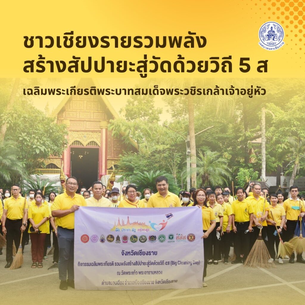 ชาวเชียงรายรวมพลังสร้างสัปปายะสู่วัด ด้วยวิถี 5 ส ท.นครเชียงรายจัด Big Cleaning Day