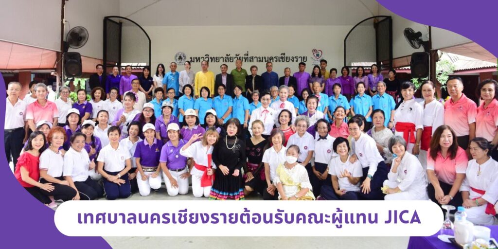 ***เมื่อวันที่ 8 สิงหาคม 2566 นายกเทศมนตรีนครเชียงราย มอบหมายให้นายณรงค์ศักดิ์ เตือนสกุล และนางบังอร มะลิดิน รองนายกเทศมนตรีนครเชียงราย ให้การต้อนรับคณะผู้แทนกรมส่งเสริมการปกครองท้องถิ่นและองค์การความร่วมมือระหว่างประเทศญี่ปุ่น หรือ JICA (Japan International Cooperation Agency) ประจำประเทศไทย ลงพื้นที่สำรวจและเก็บข้อมูลประกอบการจัดทำหลักเกณฑ์เพื่อคัดเลือกพื้นที่นำร่องและออกแบบกิจกรรมภายใต้โครงการพัฒนาศักยภาพเพื่อการฟื้นฟูท้องถิ่นอย่างยั่งยืน โดยทางนักศึกษามหาวิทยาลัยวัยที่สามจัดเต็มจัดชุดการแสดงต้อนรับคณะอย่างอบอุ่น ณ มหาวิทยาลัยวัยที่สามนครเชียงราย