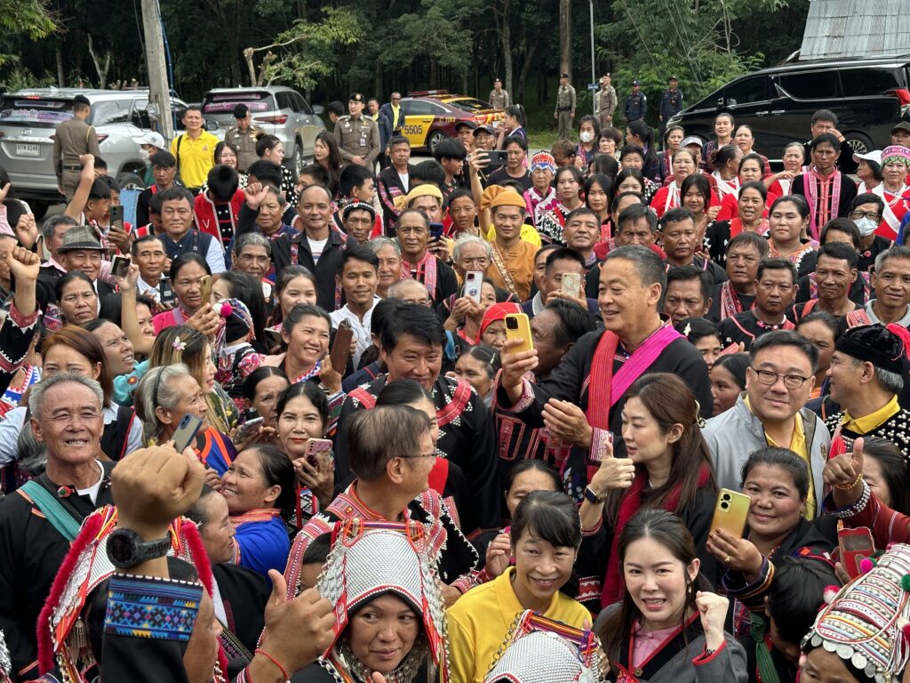***นายกรัฐมนตรีได้กล่าวกับชาวบ้านว่า เป็นครั้งแรกที่ได้มาเยือน ซึ่งได้รับการต้อนรับที่อบอุ่น ได้เข้าบ้านของผู้นำชุมชน ประเพณีไทยถือว่าการต้อนรับให้เข้ามาอยู่ในบ้านถือเป็นเกียรติสูงสุด และถือว่าเราเป็นพวกเดียวกัน สำหรับปัญหาหลักเรื่องความไม่เสมอภาคเท่าเทียมที่พี่น้องชาติพันธุ์ถูกดูแลอย่างไม่ทั่วถึงมาโดยตลอด แต่ภายใต้การผลักดันของสส.ปิยะรัฐชย์ ที่มีความมุ่งมั่นในการผลักดันร่างพระราชบัญญัติ (พ.ร.บ.) ชาติพันธุ์ที่ให้ความสำคัญเรื่องของสิทธิขั้นพื้นฐานเรื่องของสัญชาติ เพราะหากได้สัญชาติแล้วก็จะได้รับการดูแลที่ถูกต้อง ไม่ว่าจะเป็นสิทธิขั้นพื้นฐานด้านสาธารณสุข การศึกษา และเรื่องต่างๆ ซึ่งรัฐบาลสัญญาว่าจะให้การพิสูจน์ทราบสัญชาติให้จบภายใน 5 วัน ไม่ใช่ 180 วัน แต่ขอเวลาอีกสักระยะและคาดว่าจะพิจารณาจบได้ภายในเดือน ก.ค.นี้