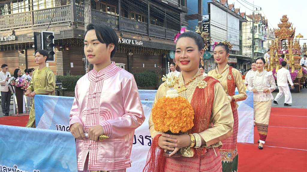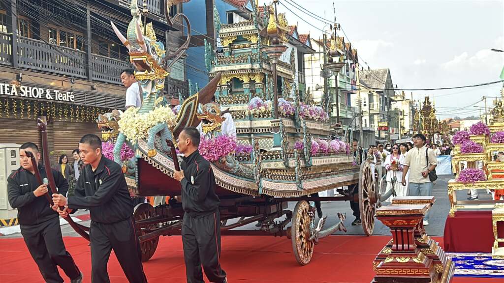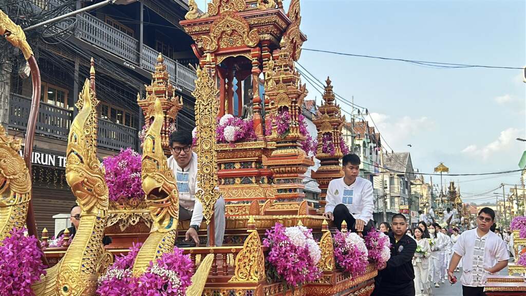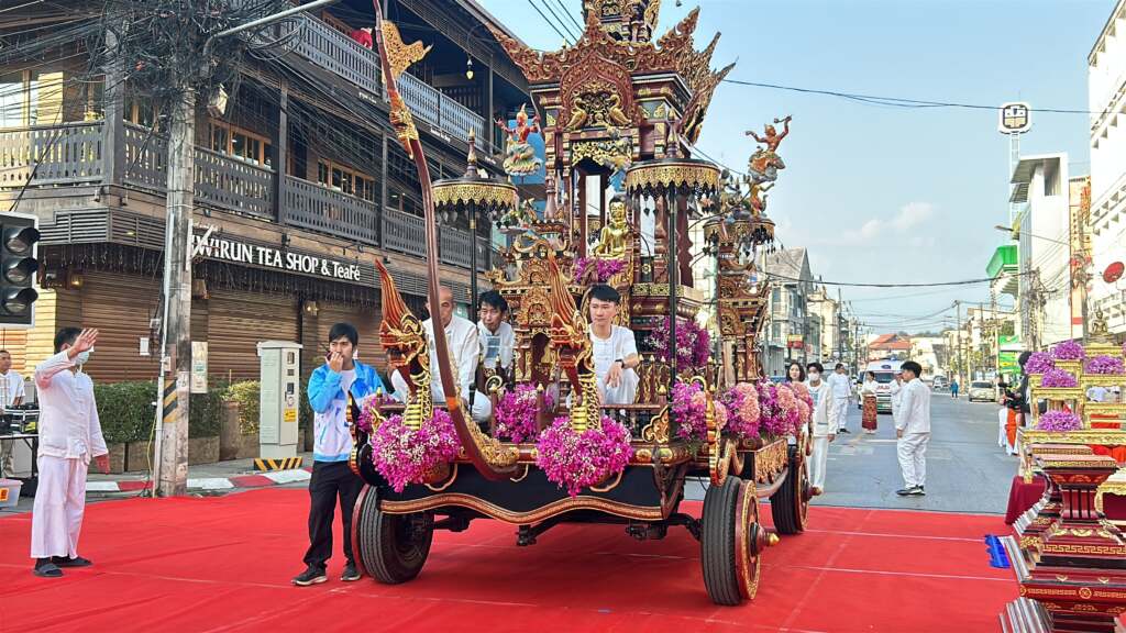 ผู้ว่าฯเชียงรายนำประชาชนทำบุญตักบาตรปีใหม่ 2568 แห่ 9 พระพุทธรูปศักดิ์สิทธิ์แวดเวียงบนรถบุษบกล้านนา
