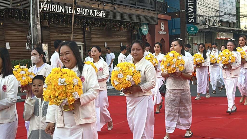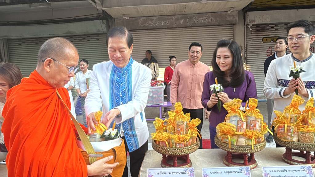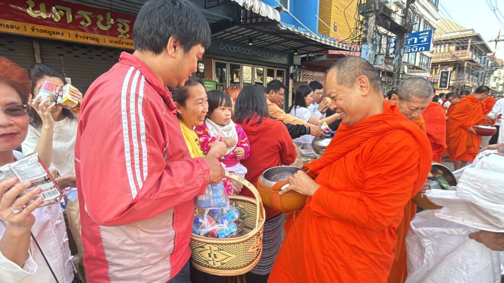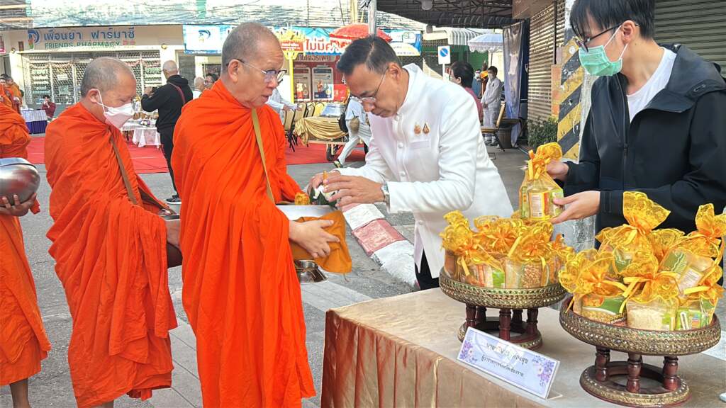 ***เมื่อเวลา 07.00 น. วันที่ 1 มกราคม 2568 ที่ถนนธนาลัย ต.เวียง อ.เมืองเชียงราย นายชรินทร์ ทองสุข ผู้ว่าราชการจังหวัดเชียงราย พร้อมด้วยนางสินีนาฏ ทองสุข นายกเหล่ากาชาดจังหวัดเชียงรายและประธานแม่บ้านมหาดไทยจังหวัดเชียงราย นายประเสริฐ จิตต์พลีชีพ รองผวจ.เชียงราย นายประสงค์ หล้าอ่อน รองผวจ.เชียงราย นายนรศักดิ์ สุขสมบูรณ์ รองผวจ.เชียงราย นายราชัน มีน้อย รองผวจ.เชียงราย พ.อ.สีหนาถ โลสุยะ เสธ.มทบ.37 พ.ต.อ.โสภณ ม่วงเฟื่อง ผกก.สภ.เมืองเชียงราย นำประชาชนชาวเชียงราย ร่วมทำบุญตักบาตรพระสงฆ์สามเณรจำนวน 129 รูป นำโดยพระรัตนมุนี ที่ปรึกษาเจ้าคณะจังหวัดเชียงราย ออกรับิณฑบาตร และประเพณีแห่พระพุทธรูปศักดิ์สิทธิ์แวดเวียงเชียงรายจำนวน 9 องค์ บนรถบุษบกล้านนาจำนวน 9 คัน มีประชาชนมาร่วมทำบุญตักบาตรปีใหม่ตลอดแนวถนนธนาลัยความยาวกว่า 1 กิโลเมตร จำนวนกว่า 1,000 คน โดยมีนายวันชัย จงสุทธานามณี นายกเทศมนตรีนครเชียงราย นางรัตนาจงสุทธานามณี ที่ปรึกษารองนายกรัฐมนตรีและรัฐมนตรีว่าการกระทรวงกลาโหม นายภูมิธรรม เวชยไชย ร.ต.อ.ดร.ธนรัฐ จงสุทธานามณี ที่ปรึกษารัฐมนตรีกระทรวงการคลัง ร่วมให้การต้อนรับและร่วมพิธี