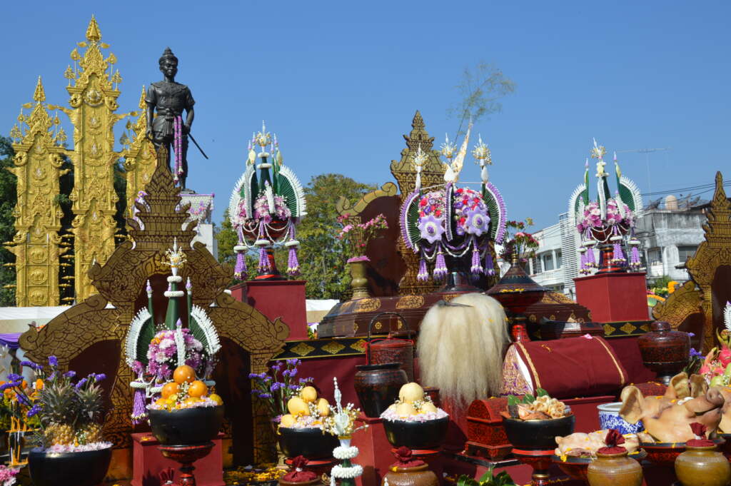 ***ก่อพิธีถวายสักการะ นางสินีนาฎ ทองสุข นายกเหล่ากาชาดจังหวัดเชียงรายและประธานแม่บ้านมหาดไทยจังหวัดเชียงราย นำส่วนราชการสมาชิกแม่บ้านมหาดไทยเชียงราย กลุ่มสตรี นักเรียนนักศึกษา และประชาชนชาวเชียงราย จำนวนกว่า 1,760 คน ฟ้อนเล็บแบบล้านนาถวายสักการะโดยรอบพระบรมราชานุสาวรีย์พญามังรายมหาราช เป็นที่งดงามอย่างยิ่งใหญ่เป็นที่ประทับใจประชาชนและนักท่องเที่ยวที่มาร่วมชมพิธีการ
