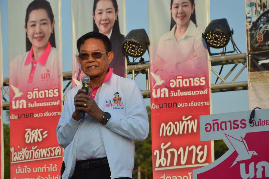 ***เมื่อเวลา 16.30 น. วันที่ 30 มกราคม 2568 ที่สนามกีฬากลางจังหวัดเชียงราย อ.เมืองเชียงราย นางอทิตาธร วันไชยธนวงศ์ อดีตนายกองค์การบริหารส่วนจังหวัดเชียงราย และผู้สมัครรับเลือกตั้งเป็นนายก อบจ.เชียงราย หมายเลข 1 เปิดเวทีปราศรัยครุ้งสุดท้ายก่อนการเลือกตั้งนายกอบจ.เชียงรายและสมาชิกสภาอบจ.เชียงราย ในวันเสาร์ที่ 1 ก.พ.2568 โดยมีผู้สมัครรับเลือกตั้งเป็นสมาชิกอบจ.เชียงราย เขต อ.เมืองเชียงราย ทั้ง 7 เขตผลัดกันขึ้นปราศรัยบนเวที มีมวลชนร่วมรับฟังกว่า 5,000 คน โดยมีนายสามารถ แก้วมีชัย อดีตรองสภาผู้แทนราษฎร นายสมพงษ์ กูลวงค์ อดีตนายกเทศมนตรีนครเชียงราย อดีตแกนนำเสื้อแดงและมวลชนผู้สนับสนุนร่วมรับฟัง