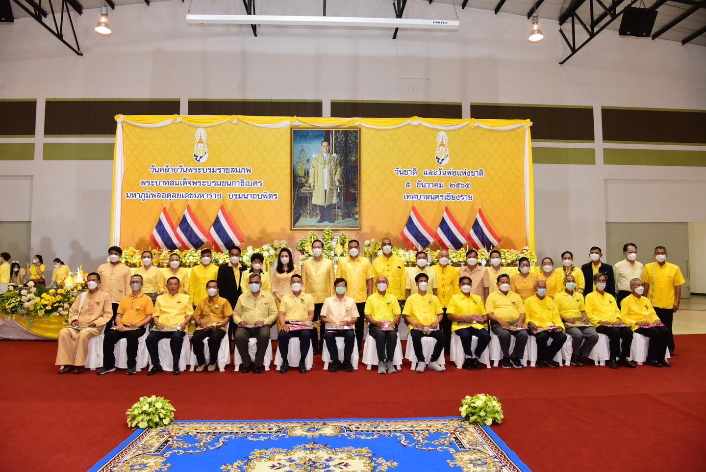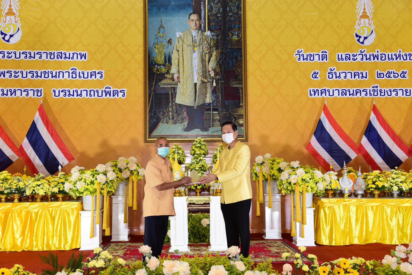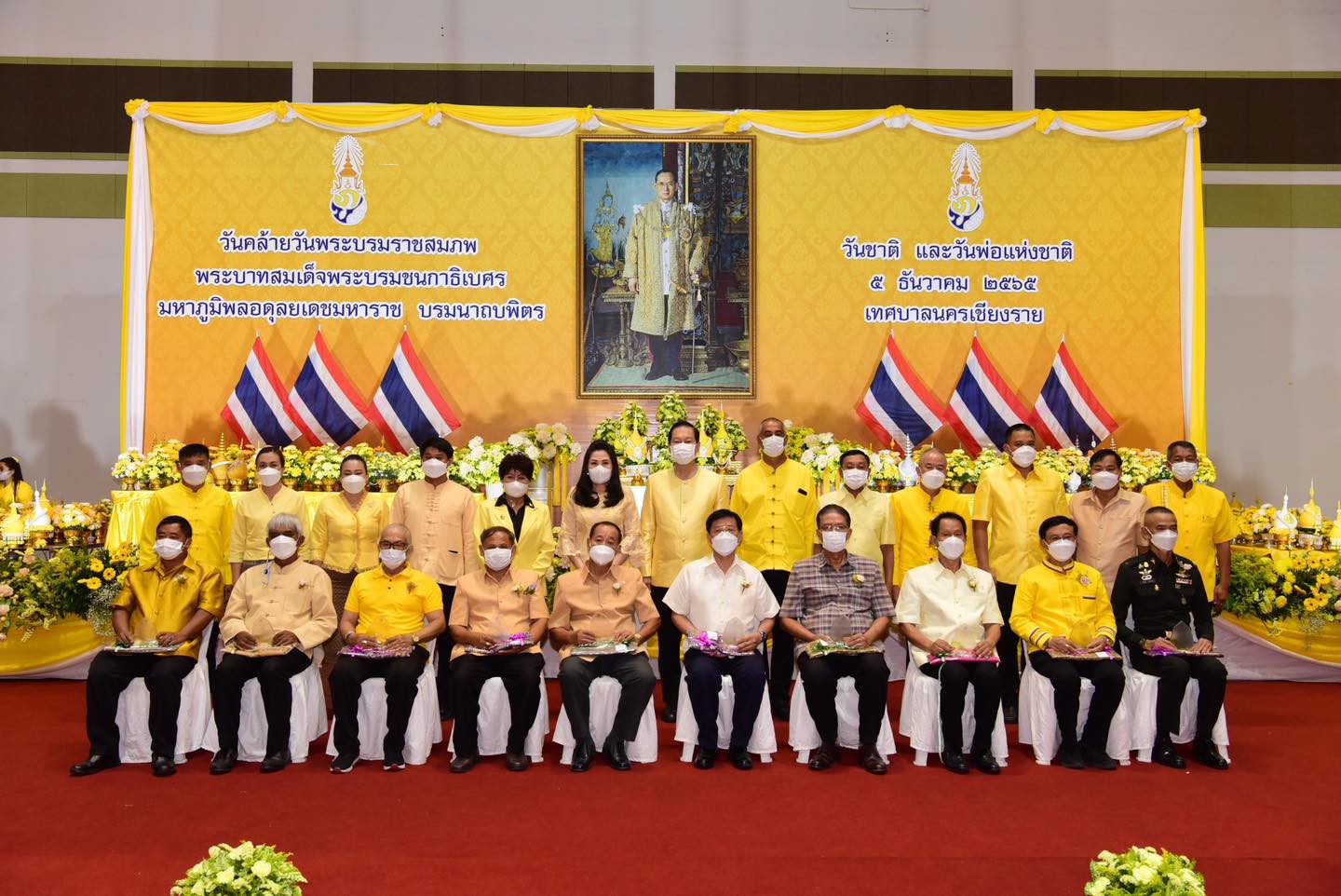 วันอาทิตย์ที่ 5 ธันวาคม 2565 เทศบาลนครเชียงราย โดยนายวันชัย จงสุทธานามณี นายกเทศมนตรีนครเชียงราย เป็นประธาน พร้อมด้วยนางรัตนา จงสุทธานามณี นายกสมาคมกีฬาแห่งจังหวัดเชียงราย คณะผู้บริหาร สมาชิกสภาเทศบาลนครเชียงราย ข้าราชการและเจ้าหน้าที่เทศบาลนครเชียงรายได้จัด “โครงการวันพ่อแห่งชาติ (เทศบาลนครเชียงรายเทิดทูนพระคุณพ่อ ประจำปี 2565 “ เพื่อให้พสกนิกรในพื้นที่เทศบาลนครเชียงราย ร่วมแสดงออกถึงความจงรักภักดีและลำนึกในพระมหากรุณาธิคุณของพระบาทสมเด็จพระบรมชนกาธิเบศร มหาภูมิพลอดุลยเดชมหาราช บรมนาถบพิตรและยกย่องบทบาทของพ่อดีเด่นที่เป็นตัวอย่างที่ดี ที่มีต่อครอบครัวและสังคมหร้อมกับมอบโล่ประกาศเกียรติคุณพ่อดีเด่น เทศบาลนครเชียงราย ณ ศูนย์ประชุมนครเซียงราย อาคารเจียงแสน