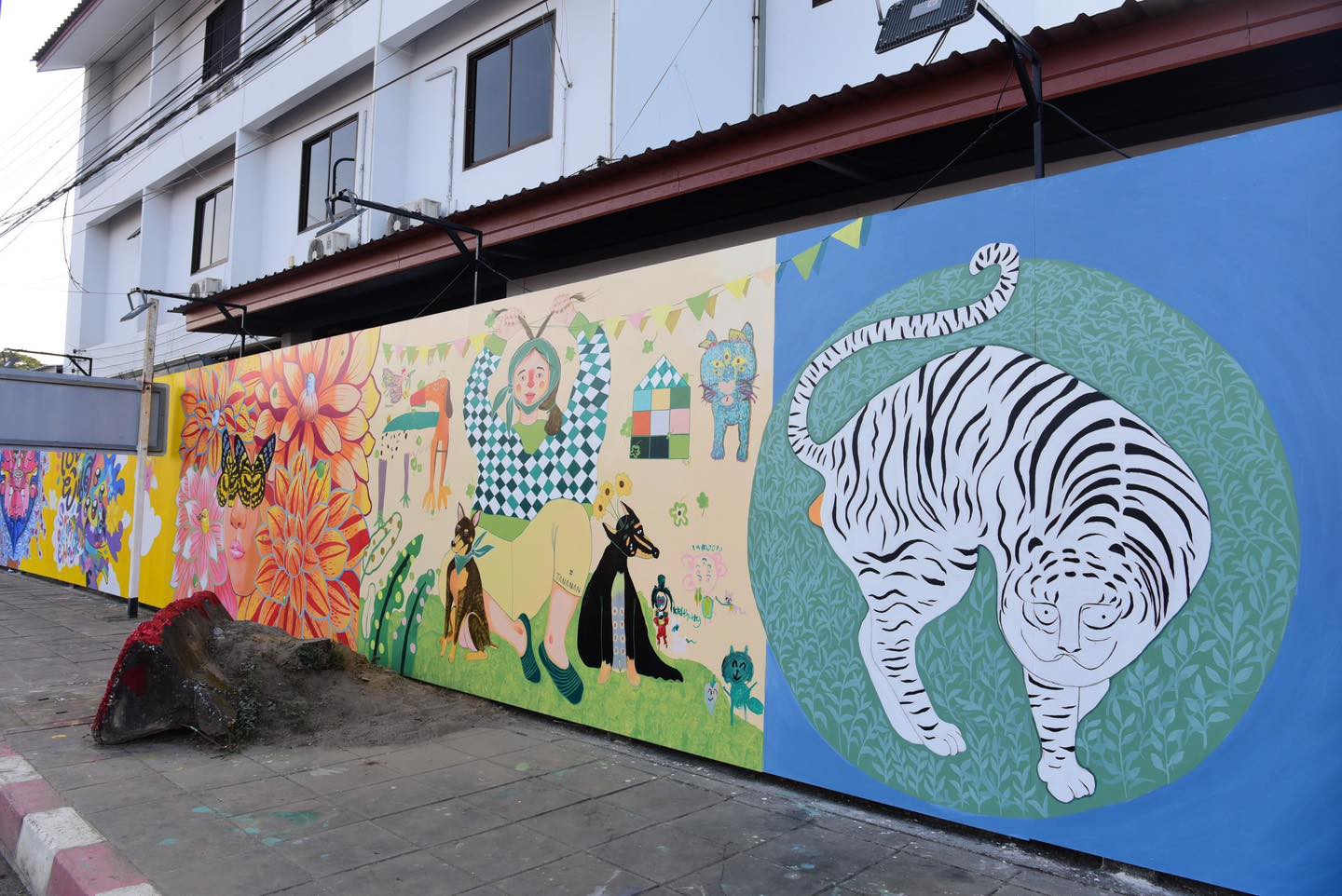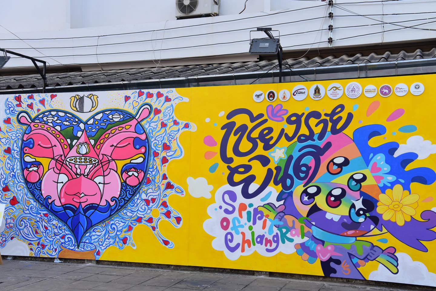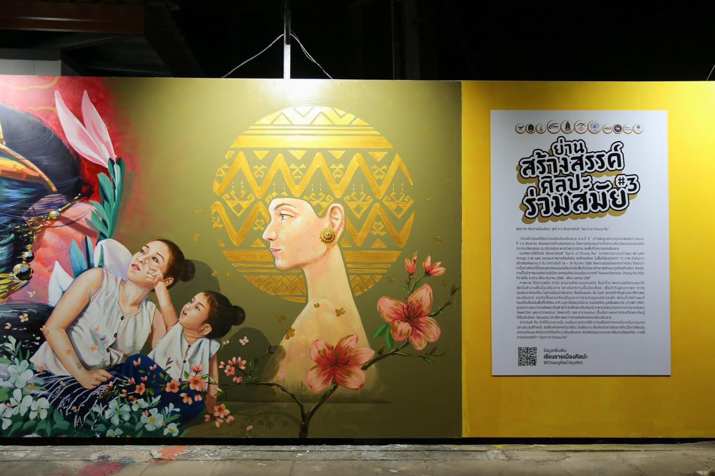 ***เมื่อวันอาทิตย์ที่ 18 ธันวาคม 2565 เวลา 18:00 น. ณ เชิงสะพานขัวพญามังราย นายประสพ เรียงเงิน ผู้อำนวยการสำนักงานศิลปวัฒนธรรมร่วมสมัย กระทรวงวัฒนธรรม เป็นประธาน ร่วมด้วย ดร.ปรีชา อนุรักษ์ รองนายกเทศมนตรีนครเชียงราย นายอิทธิพล สุนทรสีมะ รองปลัดเทศบาลนครเชียงราย , ผศ. ดร. สุทัศน์ คล้ายสุวรรณ์ รองอธิการบดี ผู้แทนอธิการบดีมหาวิทยาลัยราชภัฏเชียงราย, นายพิสันต์ จันทร์ศิลป์ วัฒนธรรมจังหวัดเชียงราย ศิลปิน แขกผู้มีเกียรติ ร่วมกิจกรรม ส่งมอบผลงาน ในโครงการย่านสร้างสรรค์ศิลปะร่วมสมัย ระยะที่ 3 ณ เชิงขัว(สะพาน)พญามังราย โดยการสร้างสรรค์ผลงานจากศิลปินขัวศิลปะ นักศึกษาด้านศิลปะ ภายใต้การนำของอาจารย์สุวิทย์ ใจป้อม ในแนวคิด “เชียงรายยินดี spirit of Chiang Rai” บนกำแพงความยาว 46 เมตร นับเป็นกิจกรรมที่สร้างงานศิลปะในย่านสร้างสรรค์ฯ เป็นครั้งที่ 3 โดยการสนับสนุนจากสำนักงานศิลปวัฒนธรรมร่วมสมัย กระทรวงวัฒนธรรม และส่งมอบผลงานแก่เทศบาลนครเชียงรายเจ้าของพื้นที่เพื่อเป็นสถานที่แลนด์มาร์คอีกแห่งของเมืองเชียงราย และร่วมกันเป็นเจ้าภาพต้อนรับนักท่องเที่ยว ศิลปิน จากทั่วโลกในการจัดมหกรรมศิลปะร่วมสมัยนานาชาติไทยแลนด์เบียนนาเล่, เชียงราย 2023 ในปี 2566 ต่อไป
