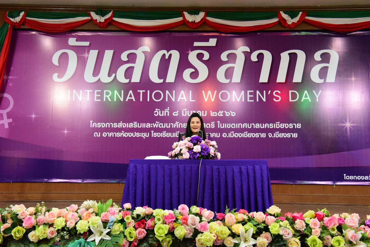 ***วันที่ 8 มีนาคม 2566 นายวันชัย จงสุทธานามณี นายกเทศมนตรีนครเชียงราย นางรัตนา จงสุทธานามณี นายกสมาคมกีฬาแห่งจังหวัดเชียงราย ในฐานะที่ปรึกษา นายกเทศมนตรีนครเชียงราย พร้อมด้วย คณะผู้บริหารเทศบาลนครเชียราย เปิดงานวันสตรีสากล ภายในใต้กิจกรรม”โครงการส่งเสริมพัฒนาศักยภาพสตรี ในเขตเทศบาลนครเชียงราย ประจำปี 2566” โดยมีผู้เข้าร่วมกิจกรรมจำนวนมาก ที่หอประชุมโรงเรียนเชียงรายวิทยาคม รวมทั้ง “ผู้หญิงเก่ง” ที่ได้มีการคัดเลือกจาก 65 ชุมชน และองค์กรต่าง ๆ ที่เป็นภาคีเครือข่ายในการช่วยเหลือสังคมของเทศบาลครเชียงราย จำนวน 88 คน