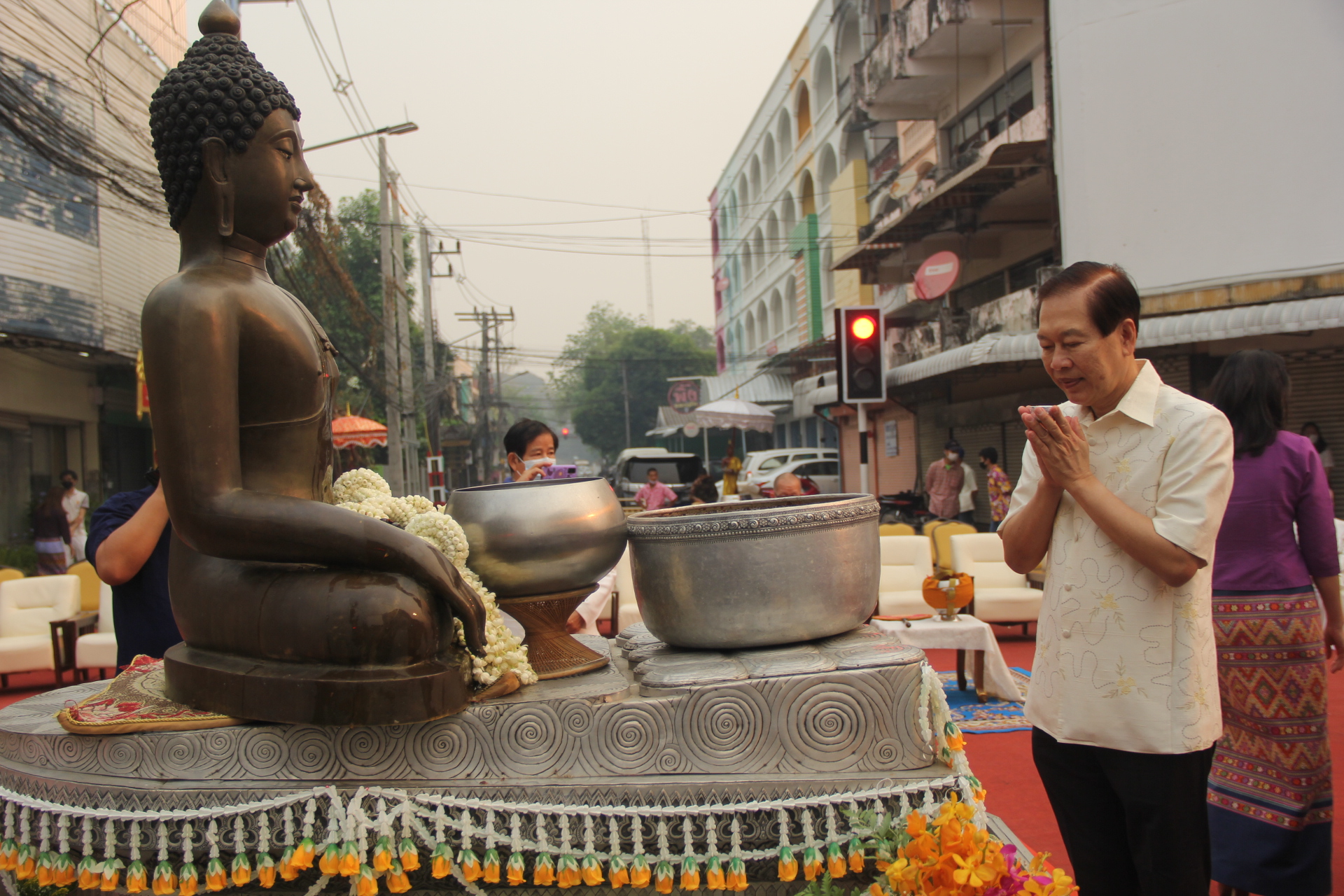 ผู้ว่าฯเชียงรายนำประชาชนทำบุญตักบาตรปีใหม่เมือง เจ้าคุณรัตนมุนี ให้พร หูอย่าใครเป่า หัวอย่าให้ใครปั่น จมูกอย่าให้ใครจูง