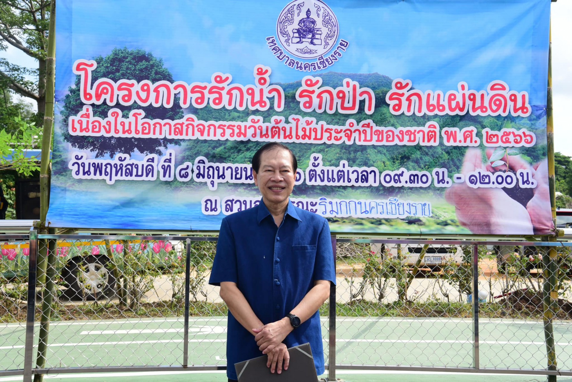 ***เมื่อวันพฤหัสบดีที่ 8 มิถุนายน 2566 เทศบาลนครเชียงรายโดย นายวันชัย จงสุทธานามณี นายกเทศมนตรีนครเชียงราย คณะผู้บริหาร นายสมบุญ หิรัณยโชติ ปลัดเทศบาลนครเชียงราย ข้าราชการ เจ้าหน้าที่ เทศบาลนครเชียงราย ร่วมกันเพิ่มพื้นที่สีเขียวในเขตเทศบาลนครเชียงราย กิจกรรม “รักน้ำ รักป่า รักแผ่นดินเนื่องในวันต้นไม้ประจำปีของชาติ พ.ศ.2566” ซึ่งวันต้นไม้แห่งชาติ ตรงกับวันวิสาขบูชา หรือ วันขึ้น 15 ค่ำเดือน 6 ของทุกปี เป็นวันสำคัญของชาติที่ประชาชนทุกหมู่เหล่า จะได้ร่วมกันปลูกต้นไม้ไว้เป็นที่ระลึกและช่วยเพิ่มพูนทรัพยากรป่าไม้ อันเป็นการบำเพ็ญประโยชน์ให้แก่ประเทศชาติ อีกทางหนึ่ง