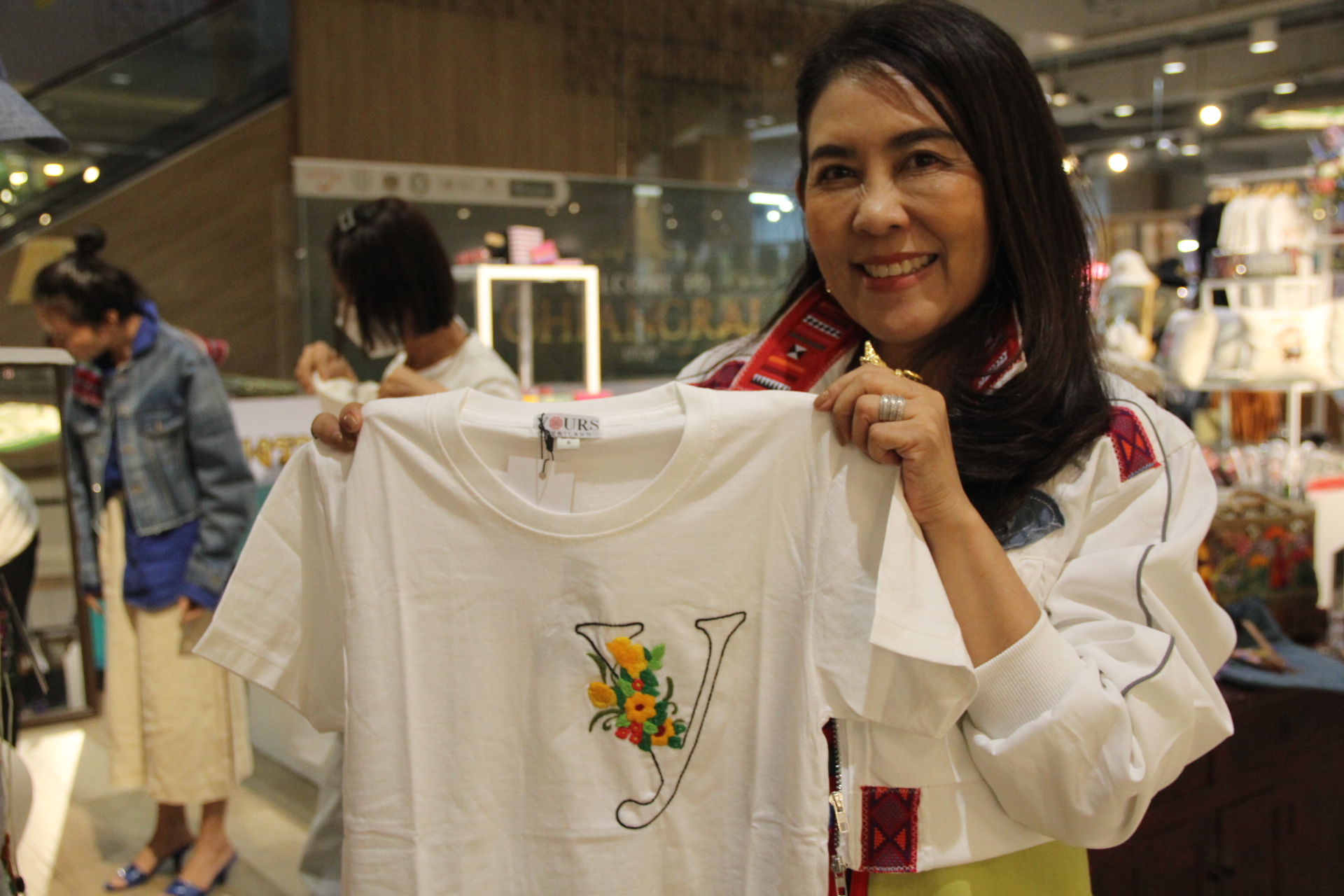 ***นางนงเยาว์ เนตรประสิทธิ์ นายกสมาคมสหพันธ์ท่องเที่ยวภาคเหนือ และผู้บริหารห้องเสื้อ YOURS Thailand กล่าวว่า แบบเสื้อผ้าลายปักและของใช้ต่างๆที่นำมาแสดงและจำหน่าย เป็นสินค้าที่ผลิตจากชุมชนต่างๆในพื้นที่ต่างๆจังหวัดเชียงราย ที่เป็นลายดั้งเดิม ที่ชาวบ้านได้รับการถ่ายทอดความรู้ให้นำมาประยุกต์เป็นลายผ้าแบบโมเดิร์นที่สามารถใช้ได้จริงในชีวิตประจำวัน เป็นการฝึกอาชีพสร้างรายได้ให้กับชาวบ้านในชุมชน นอกจากยังได้นำองค์ความรู้นี้นำไปฝึกสอนให้แก่ผ็ต้องขังในทัณฑสถานหญิงเชียงรายได้ทำขึ้นมาในชื่อแบรนด์ “ปักใจ-Pak Jai” เพื่อจำหน่ายสร้างรายได้และอาชีพให้แก่ผู้ต้องขังหญิงได้มีอาชีพติดตัว สามารถนำความรู้ที่ได้มาสร้างอาชีพและรายได้แก่ตนเองเมือพ้นโทษมาแล้วอีกด้วย