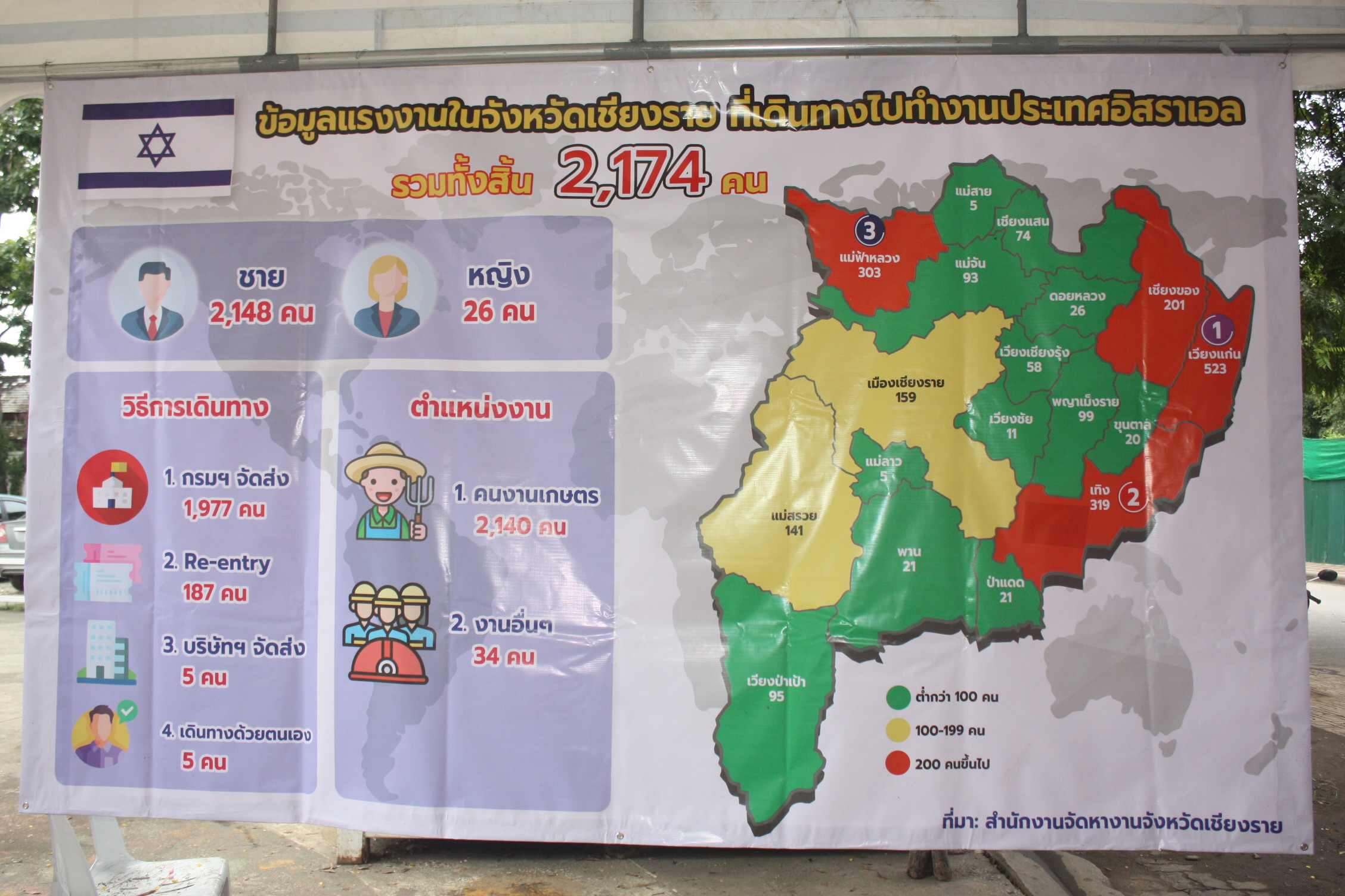 ***ทั้งนี้ ด้านแรงงานจังหวัดเชียงรายและพัฒนาสังคมและความมั่นคงของมนุษย์จังหวัดเชียงราย ได้ให้ความมั่นใจว่า หากแรงงานไทยที่ทำงานอยู่ประเทศอิสราเอลได้กลับมาตั้งหลักที่ประเทศไทยบ้านเกิดก่อน เมื่อเหตุการณ์สงบลง รัฐบาลไทยพร้อมจะสนับสนุนให้กลับไปทำงานใหม่อีกครั้งอย่างดีที่สุดตามความต้องการของแรงงานไทย