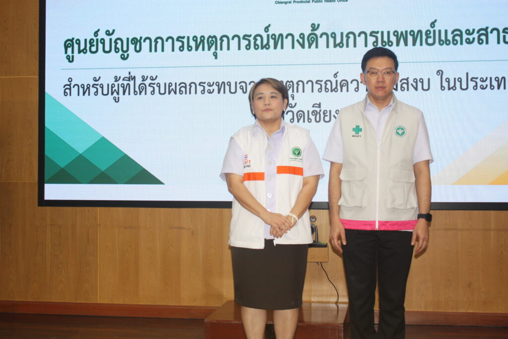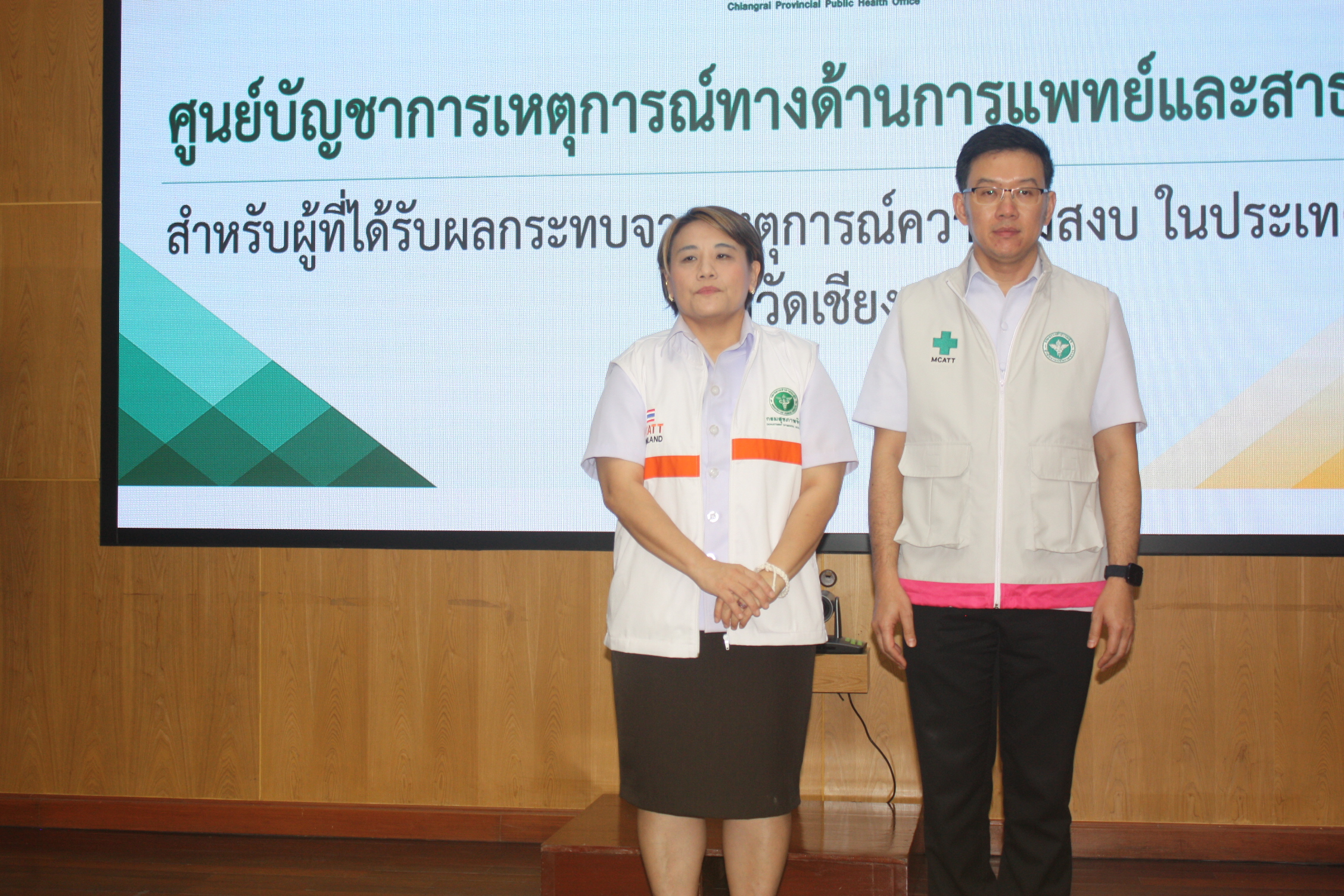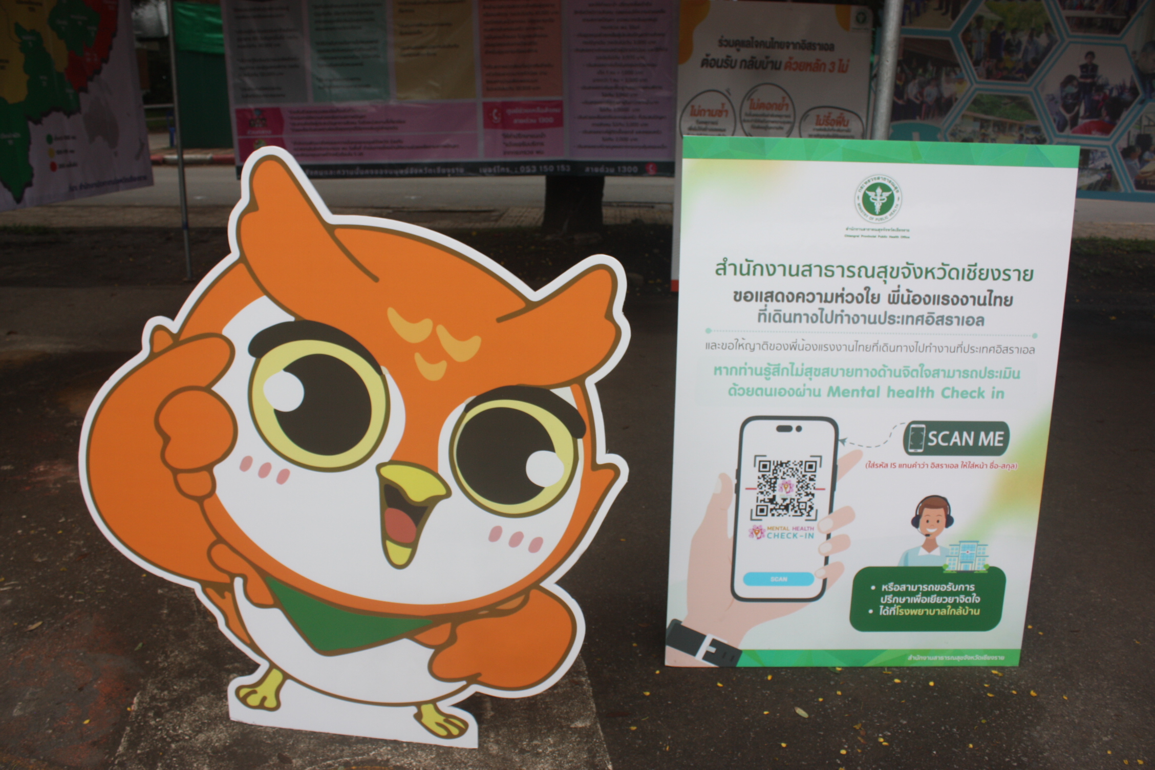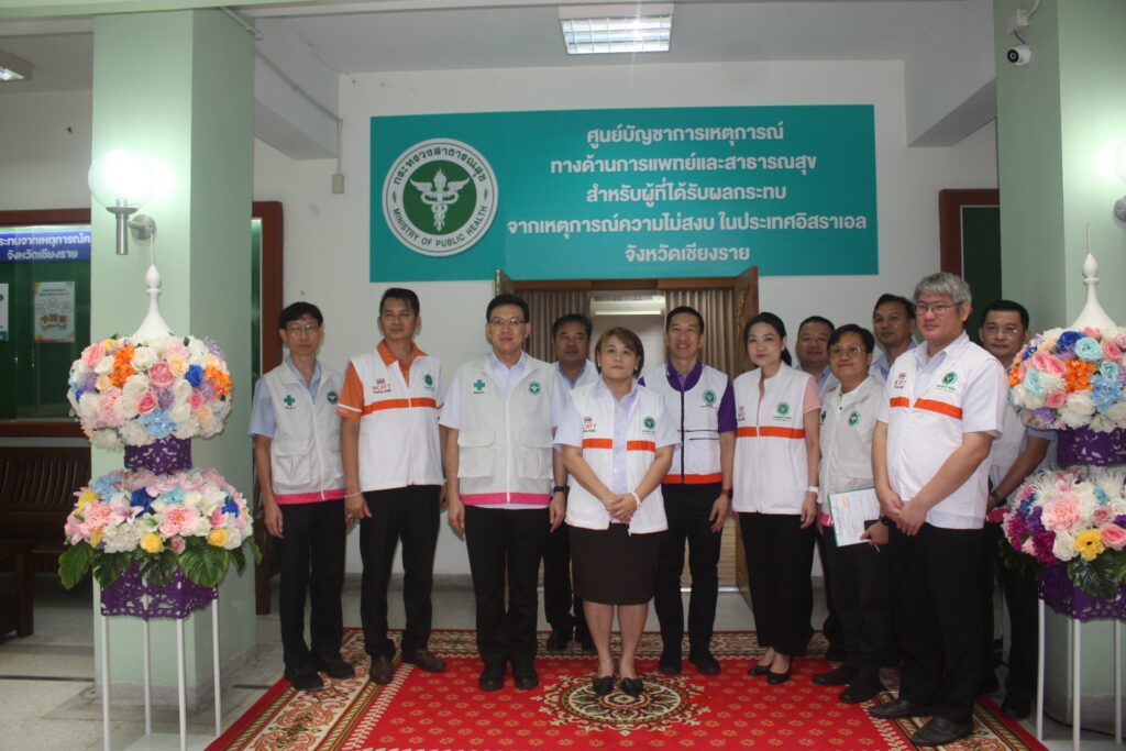 ***จากกรณีเหตุการณ์ความไม่สงบในประเทศอิสราเอล ส่งผลให้แรงงานไทยที่อาศัยอยู่ในประเทศอิสราเอล ได้รับผลกระทบเป็นจำนวนมาก และกระทรวงสาธารณสุขเป็นหน่วยสนับสนุนในการช่วยเหลือทางด้านจิตใจผู้ที่ได้รับผลกระทบ ซึ่งหมายถึงแรงงานที่เดินทางกลับจากประเทศอิสราเอล ญาติ และครอบครัว จังหวัดเชียงรายมีแรงงานไทยไปทำงานและอาศัยอยู่ในพื้นที่ความไม่สงบดังกล่าว จำนวน 2,174 คน มากเป็นอันดับ 2 ของประเทศ สำนักงานสาธารณสุขจังหวัดเชียงราย จึงได้กำหนดให้มีการเปิดศูนย์ปฏิบัติการภาวะฉุกเฉินด้านการแพทย์และสาธารณสุขขึ้นการดูแลและเยี่ยวยาผู้รับผลกระทบทางด้านสุขภาพกายและสุขภาพจิต