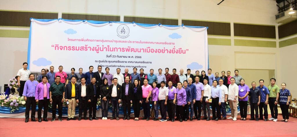 ***เมื่อวันที่ 23 กันยายน 2566 นายกเทศมนตรีนครเชียงราย นายวันชัย จงสุทธานามณี นายกสมาคมกีฬาแห่งจังหวัดเชียงราย นางรัตนา จงสุทธานามณี นำคณะผู้บริหาร สมาชิกสภาเทศบาล ข้าราชการ เจ้าหน้าที่เทศบาลนครเชียงราย ร่วมให้การต้อนรับรองประธานสภาผู้แทนราษฎรคนที่ 2 นายพิเชษฐ์ เชื้อเมืองพาน ส.ส.เชียงราย เขต 7 พร้อมภริยาและคณะ ที่ให้เกียรติเดินทางมาร่วมประชุมพบปะผู้นำจากเขตอำเภอเมืองเชียงรายและประธานชุมชนจาก 65 ชุมชนในเขตเทศบาลนครเชียงราย ในกิจกรรมสร้างผู้นำในการพัฒนาเมืองอย่างยั่งยืน ภายใต้โครงการเพิ่มศักยภาพกลุ่มแกนนำชุมชนและประชาชนในเขตเทศบาลนครเชียงราย ณ อาคารเจียงแสน ศูนย์ประชุมนครเชียงราย