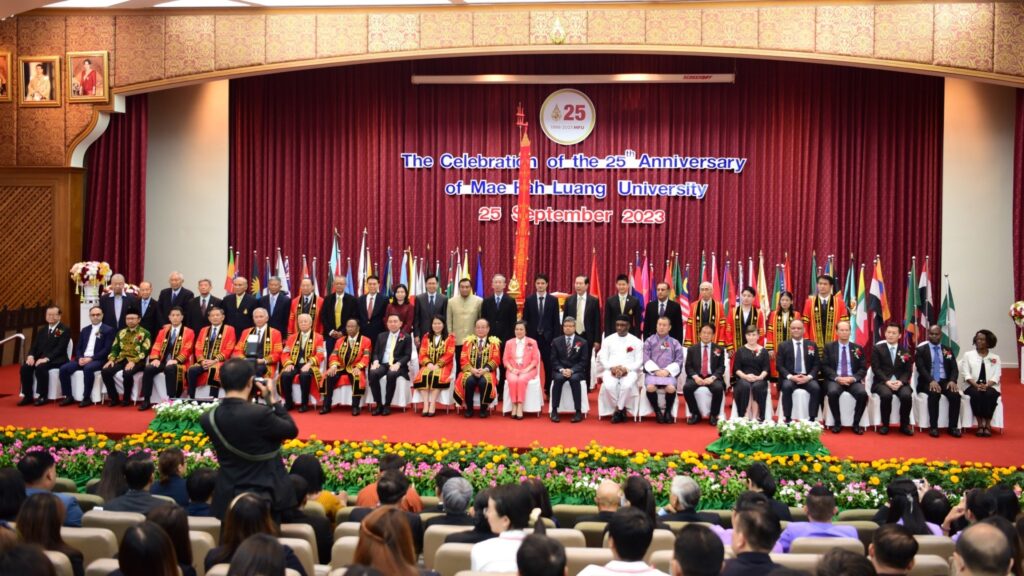 ***เมื่อวันที่ 25 กันยายน 2566 นายวันชัย จงสุทธานามณี นายกเทศมนตรีนครเชียงราย พร้อมด้วยคณะผู้บริหารเทศบาลนครเชียงรายและโรงเรียนในสังกัด ร่วมในพิธีเฉลิมฉลองเนื่องในโอกาสครบรอบ 25 ปี แห่งการสถาปนามหาวิทยาลัยแม่ฟ้าหลวง ระหว่างวันที่ 24-25 กันยายน 2566 ประกอบด้วยพิธีงานเลี้ยงรับรองเฉลิมฉลอง ณ ห้องประชุมวนาสวรรค์-วนาศรม และพิธีเฉลิมฉลองฯ การกล่าวสุนทรพจน์แสดงความยินดีจากคณะทูตานุทูต ณ หอประชุมสมเด็จย่า โดยมีศาสตราจารย์พิเศษ ดร.วันชัย ศิริชนะ นายกสภามหาวิทยาลัยแม่ฟ้าหลวง เป็นประธานในพิธี ผู้ช่วยศาสตราจารย์ ดร.มัชฌิมา นราดิศร อธิการบดี ตลอดจนผู้แทนหน่วยงานภาครัฐ ภาคเอกชน ประชาชน และนักศึกษามหาวิทยาลัยแม่ฟ้าหลวงร่วมกิจกรรม
