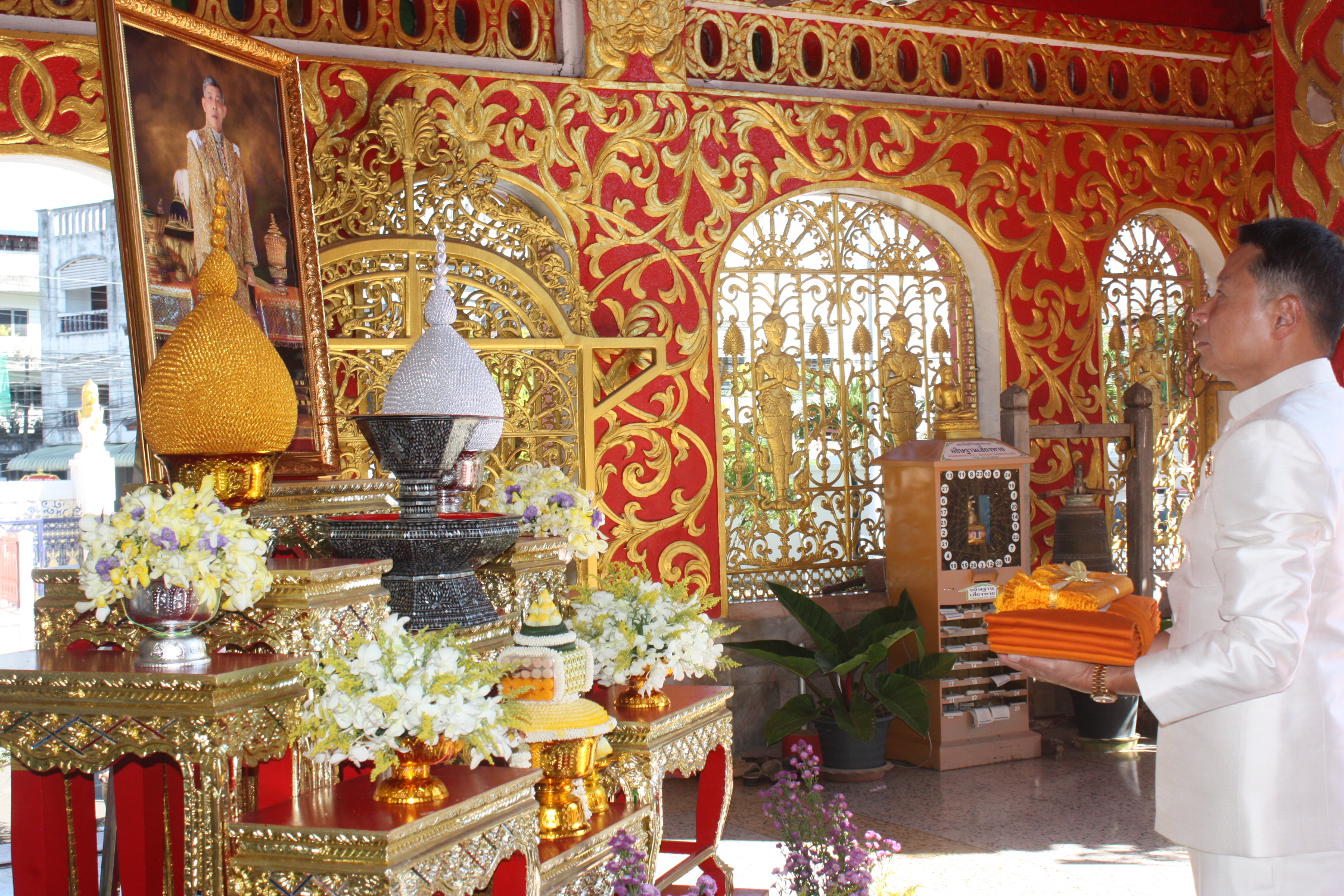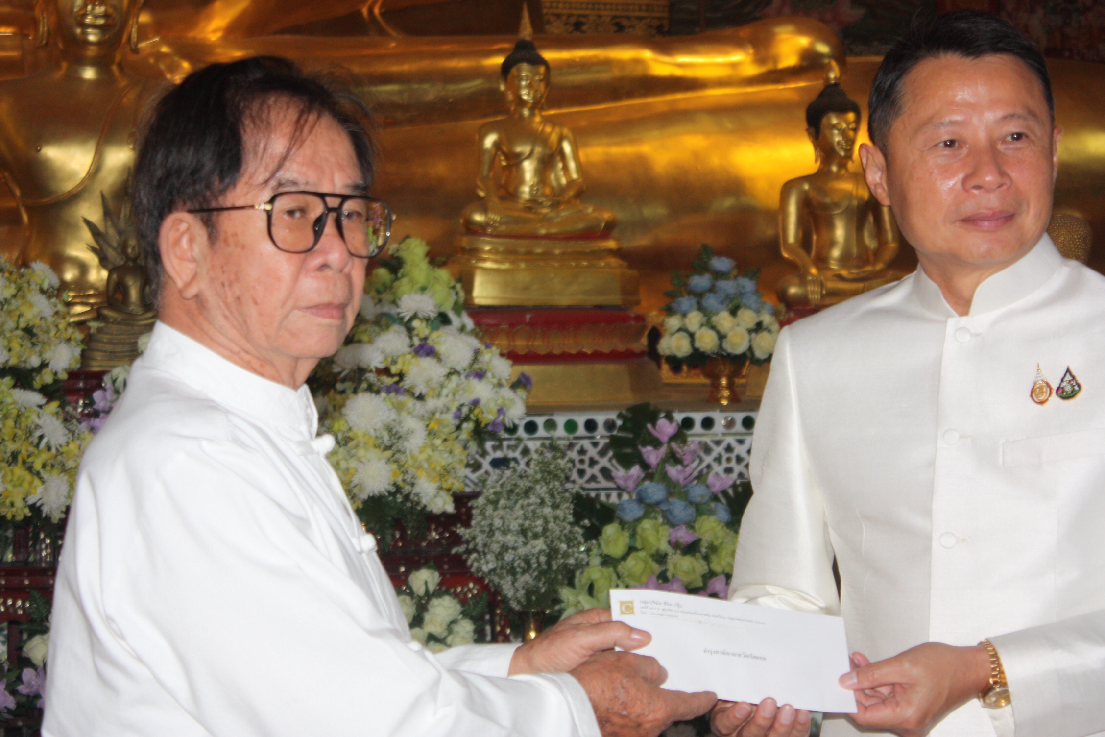 ***โอกาสนี้ นายพุฒิพงศ์ ศิริมาตย์ ผู้ว่าราชการจังหวัดเชียงราย ได้มอบหมายให้ นายศรัณยู มีทองคำ รองผู้ว่าราชการจังหวัดเชียงราย ร่วมในพิธีถวายผ้าพระกฐินพระราชทาน โดยมี นายพิสันต์ จันทร์ศิลป์ วัฒนธรรมจังหวัดเชียงราย นายโสไกร ใจหมั้น ผอ.สำนักงานพระพุทธศาสนาจังหวัดเชียงราย พร้อมด้วยหัวหน้าส่วนราชการ ทหาร ตำรวจ ผู้บริหาร เจ้าหน้าที่ กลุ่มบริษัท ซีวิค กรุ๊ป ภาคเอกชน ภาคสังคม และประชาชนคณะศรัทธา ร่วมในพิธีและร่วมอนุโมทนาถวายพระราชกุศลปัจจัยจำนวน 1,119,888 บาท (หนึ่งล้านหนึ่งแสนหนึ่งหมื่นเก้าพันแปดร้อยแปดสิบแปดบาทถ้วน) โดยมี พระพุทธิญาณมุณี เจ้าคณะจังหวัดเชียงราย เจ้าอาวาสวัดพระธาตุผาเงา พร้อมด้วยเจ้าอาวาสวัดเจ็ดยอด พระภิกษุ สามเณร รับมอบเงินบริจาคจตุปัจจัยสำหรับการทอดกฐิน