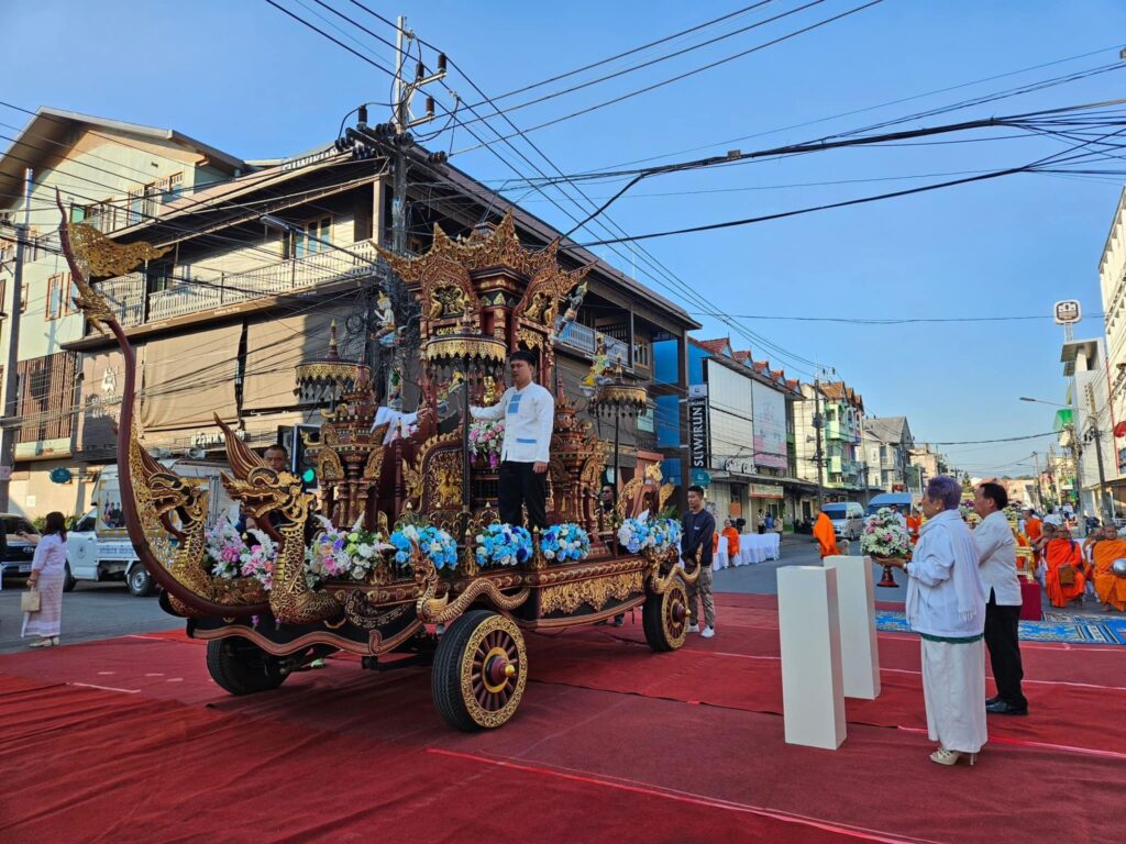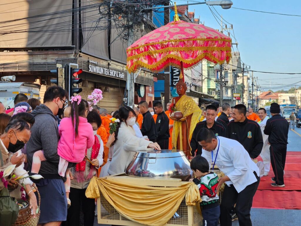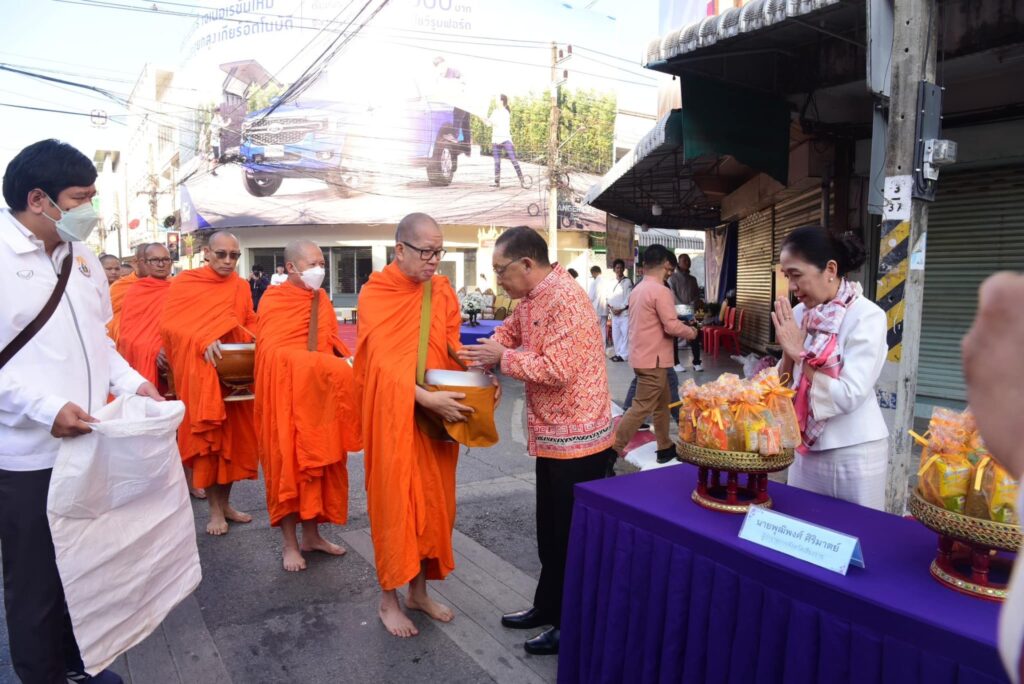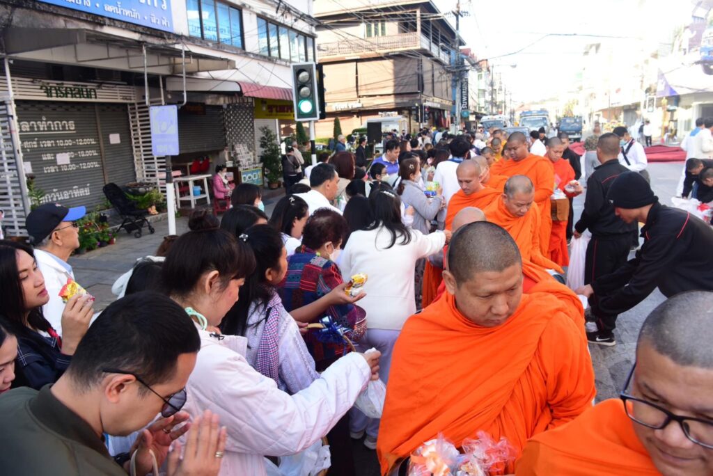 ผู้ว่าเชียงรายนำประชาชนตักบาตรปีใหม่แห่พระแวดเวียงเชียงราย
