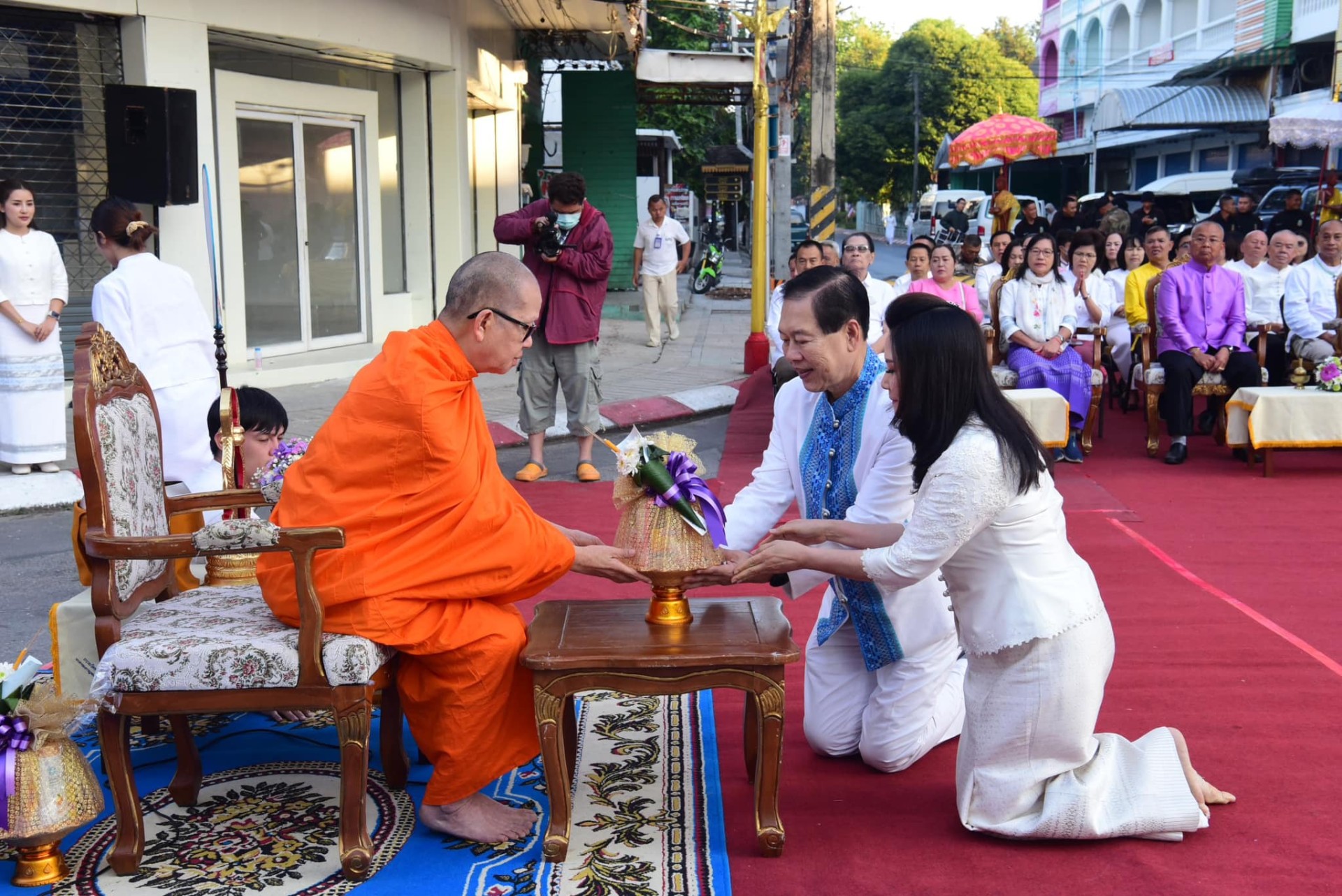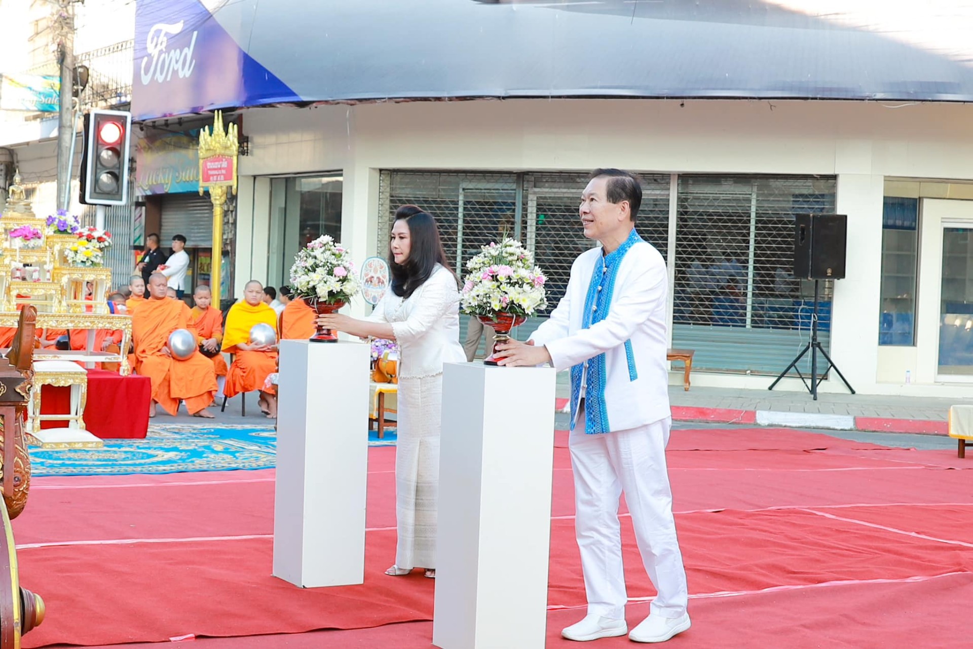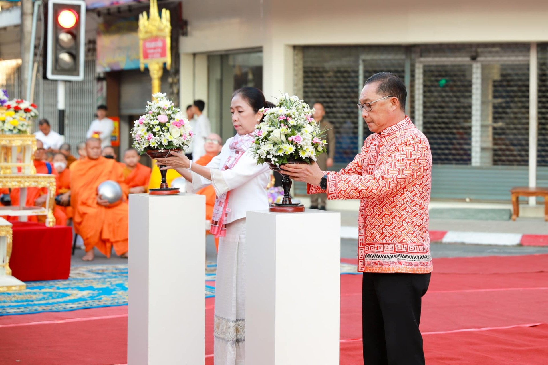 ผู้ว่าเชียงรายนำประชาชนตักบาตรปีใหม่แห่พระแวดเวียงเชียงราย