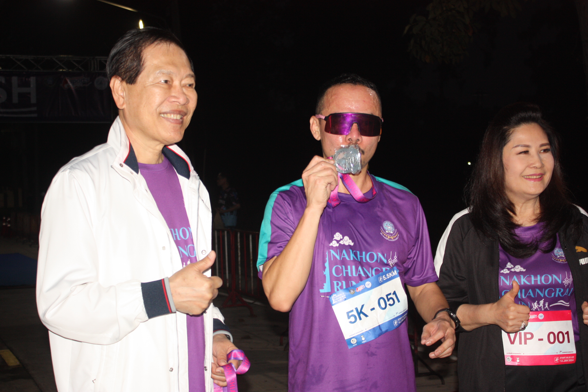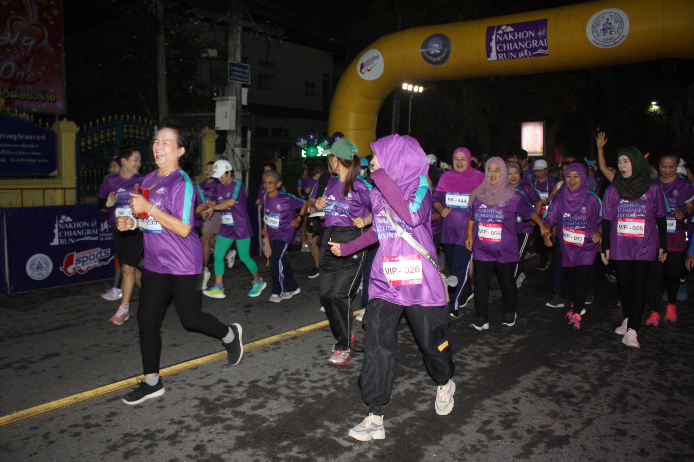 ***เมื่อเวลา 05.30 น. วันที่ 14 ม.ค.2567 ที่ถนนหน้าสวนตุงและโคมเทศบาลนครเชียงราย (ทางเข้างานเทศกาลเชียงรายดอกไม้งาม ครั้งที่ 20) ดร.วันชัย จงสุทธานามณี นายกเทศมนตรีนครเชียงราย พร้อมด้วย นางรัตนา จงสุทธานามณี ที่ปรึกษารองนายกรัฐมนตรี (นายภูมิธรรม เวชยชัย) นางชญาณ์นันท์ เชื้อศิริถาวร ผู้อำนวยการการกีฬาแห่งประเทศไทย จังหวัดเชียงราย พ.ต.อ.โสภณ ม่วงเฟื่อง ผกก.สภ.เมืองเชียงราย นายสรรเสริญ ศีติสาร ผู้ช่วยผู้อำนวยการการท่องเที่ยวแห่งประเทศไทย สำนักงานเชียงราย และคณะกรรมการบริหารสมาคมกีฬาแห่งจังหวัดเชียงราย คณะบริหารเทศบาลนครเชียงราย ร่วมปล่อยตัวนักวิ่ง ระยะทาง 10.5 กิโลเมตร และ 5.5 กิโลเมตร ในการวิ่งรายการ Nakhon Chiangrai Run จากบริเวณด้านหน้าสวนตุงและโคมเทศบาลนครเชียงราย โดยมีนักกีฬาร่วมเดิน-วิ่งรวม 999 คน
