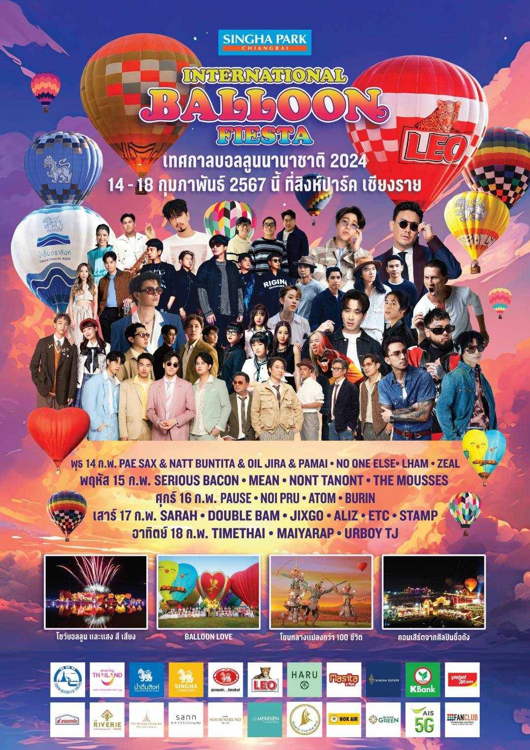 ***งานเทศกาลบอลลูนนานาชาติประจำปี 2567 Singha Park Chiangrai International Balloon Fiesta 2024 ณ ไร่บุญรอด สิงห์ปาร์คเชียงราย ระหว่างวันที่ 14 -18 กุมภาพันธ์ 2567 มีการจัดแสดงบอลลูนนานาชาติจาก 11 ประเทศทั่วโลกจำนวน 28 ลูก พบกับมหกรรมคอนเสิร์ตสุดโรแมนติกจากศิลปินชื่อดังตลอด 5 วัน 5 คืน มีบริการซุ้มอาหารเมนูอร่อยจากร้านอาหารชื่อดังทั่วประเทศกว่า 50 บูท บัตรเข้างานราคา 200 บาท
