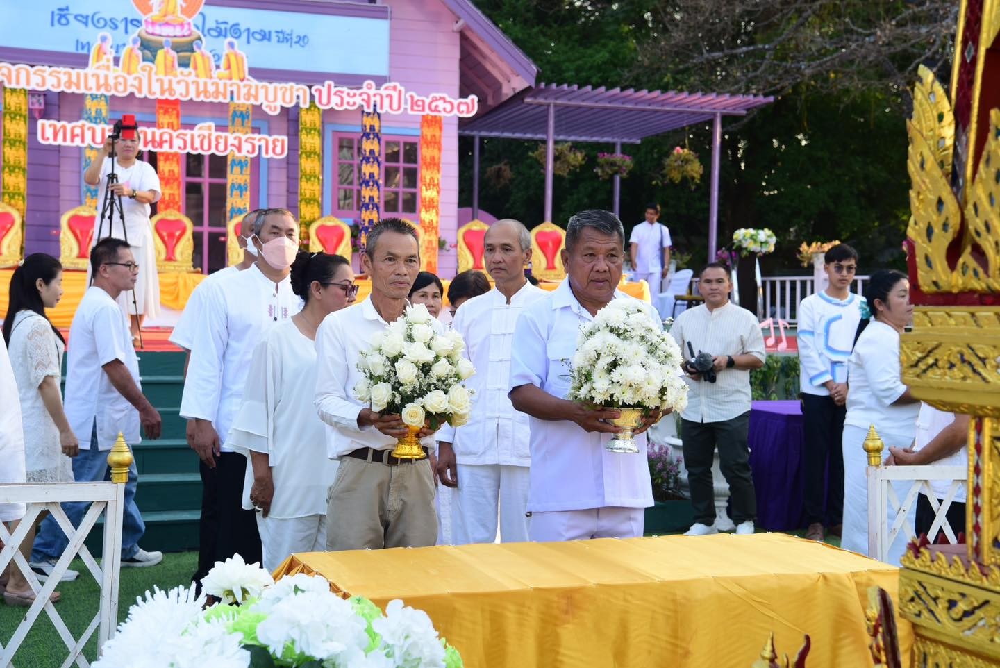 ***เมื่อวันที่ 24 กุมภาพันธ์ 2567 เป็นวันมาฆบูชา เป็นประเพณีการบูชาและการรำลึกถึงเหตุการณ์ในวันเพ็ญเดือน 3 เนื่องในโอกาสคล้ายวันที่พระพุทธเจ้าทรงแสดงโอวาทปาติโมกข์ แก่พระภิกษุจำนวน 1,250 รูปได้มาประชุมกันโดยมิได้นัดหมาย เทศบาลนครเชียงรายโดย นายวันชัย จงสุทธานามณี นายกเทศมนตรีนครเชียงราย นางรัตนา จงสุทธานามณี ที่ปรึกษาของรองนายกรัฐมนตรี(ภูมิธรรม เวชยชัย) และนายกสมาคมกีฬาแห่งจังหวัดเชียงราย นายประสพโชค อยู่สำราญ ที่ปรึกษาปลัดกระทรวงมหาดไทย นายโชติศิริ ดารายนต์ นายกสมาคมสื่อมวลชนและนักประชาสัมพันธ์เชียงราย คณะผู้บริหาร ข้าราชการและเจ้าหน้าที่เทศบาลนครเชียงราย พี่น้อง 65 ชุมชน 4 เขต และมหาวิทยาลัยวัยที่สามนครเชียงราย ร่วมจัดกิจกรรม การเวียนเทียนรอบพระบรมสารีริกธาตุ โดยได้รับความเมตตาจาก พระเดชพระคุณพระรัตนมุณี ที่ปรึกษาเจ้าคณะจังหวัดเชียงราย วัดพระแก้ว แสดงพระธรรมเทศนา 1 กัณฑ์ พร้อมนำเวียนเทียนรอบพระบรมสารีริกธาตุร่วมถวายพุทธบูชา บริเวณสวนตุงและโคม นครเชียงราย