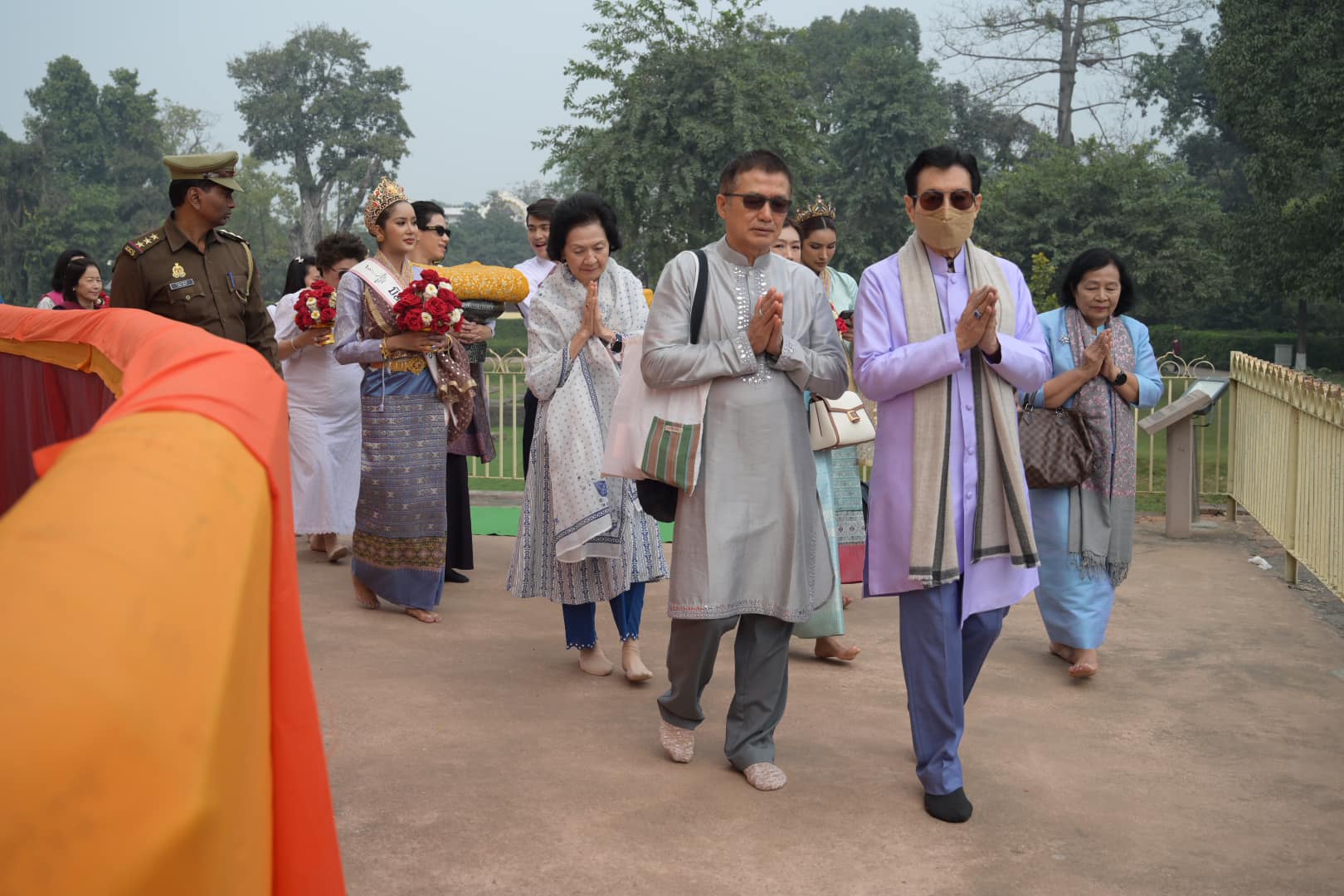 ***เมื่อวันที่ 22-24 กุมภาพันธ์ 2567 ที่ผ่านมา ณ มกุฏพันธนเจดีย์ วัดไทยกุสินาราเฉลิมราชย์ เมืองกุสินารา ประเทศสาธารณรัฐอินเดีย คณะพุทธศาสนิกชนชาวเชียงรายนำโดย คุณพงษ์ฤทธิ์ ศรีสมิท คหบดีจังหวัดเชียงราย พญ.เรณู ศรีสมิท อดีตผอ.รพ.เชียงรายประชานุเคราะห์ คุณชวลิต สุธรรมวงศ์ อดีตประธานหอการค้าจังหวัดเชียงราย และคณะสาวงามมิสแกรนด์ไทยแลนด์และมิสแกรนด์เชียงราย ร่วมงานพิธีแห่สักการะบูชาพระบรมสารีริกธาตุของพระบรมศาสดาสัมมาสัมพุทธเจ้า โดยมีพิธีการสมโภชและนมัสการพระบรมสารีริกธาตุ ประจำปี พ.ศ.2567 เป็นปีที่ 15 อย่างยิ่งใหญ่ ด้วยริ้วขบวนของพุทธศาสนิกชนจากในท้องถิ่นและประเทศต่างๆอย่างงดงามกว่า 2,000 คน โดยพระเมตตาในเจ้าประคุณสมเด็จพระมหาธีราจารย์ กรรมการมหาเถรสมาคม ประธานสำนักงานกำกับดูแลพระธรรมทูตไปต่างประเทศ มอบหมายให้พระพรหมเสนาบดี กรรมการมหาเถรสมาคม เจ้าอาวาสวัดปทุมคงคา รองประธานสำนักงานกำกับดูแลพระธรรมทูตไปต่างประเทศรูปที่ 1 เป็นประธาน พระวิเทศวชิรญาณ วิ. เจ้าอาวาสวัดไทยกุสินาราเฉลิมราชย์ เป็นประธานจัดงานฝ่ายบรรพชิต นายพงศ์ฤทธิ์ ศรีสมิท ประธานจัดงานฝ่ายคฤหัสถ์ นายทองเปลว ศิริพรพิทักษ์ ประธานอุปถัมภ์การจัดงาน เพื่อให้พุทธศาสนิกชนทั่วไป ได้มีโอกาสกราบสักการะและรำลึกถึงพระธรรมคำสอนของพระบรมศาสดาที่ทรงแสดงไว้จนถึงวันปรินิพพาน