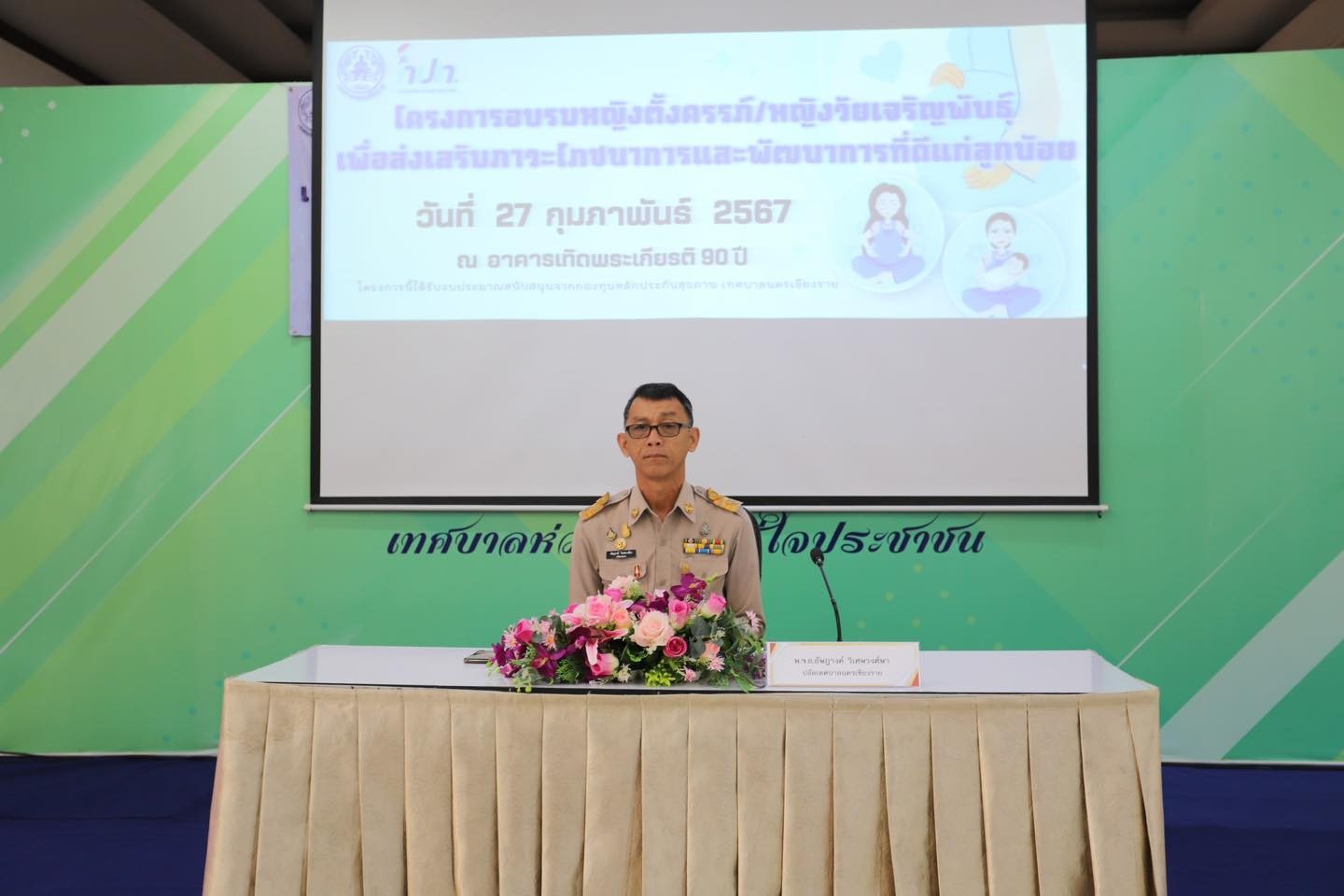 ***เมื่อวันอังคารที่ 27 กุมภาพันธ์ 2567 เทศบาลห่วงใยใส่ใจประชาชน นายวันชัย จงสุทธานามณี นายกเทศมนตรีนครเชียงราย มอบหมายให้พ.จ.อ อัษฎางค์ วิเศษวงศ์ษา ปลัดเทศบาลนครเชียงราย เป็นประธานพิธีเปิด“โครงการอบรมหญิงตั้งครรภ์ หญิงวัยเจริญพันธุ์” สมาชิกสภาเทศบาลนครเชียงราย กองการแพทย์ สนับสนุนงบประมาณจากกองทุนหลักประกันสุขภาพเทศบาลนครเชียงราย