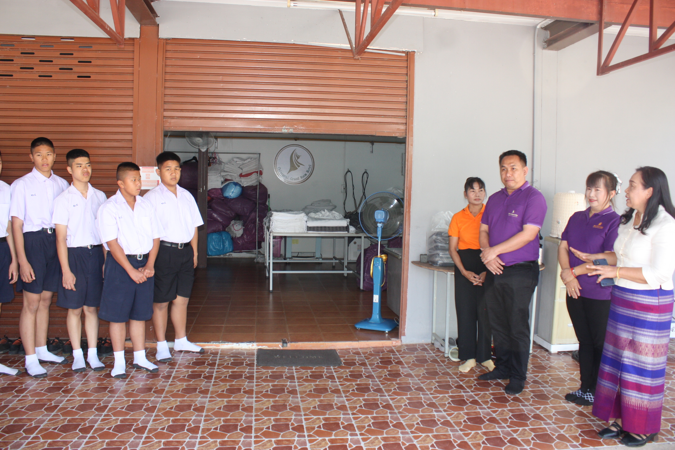 ***นางอรสา เอื้อสามาลย์ ผู้จัดการทั่วไป โรงแรมเชียงรายแกรนด์รูม กล่าวว่า ผู้บริหารโรงแรมเชียงรายแกรนด์รูมมีนโยบายในการทำธุรกิจเพื่อให้มีส่วนร่วมในการช่วยเหลือสังคม ซึ่งทางโรงแรมได้ให้ความร่วมมือในการถ่ายทอดฝึกสอนให้ความรู้กับน้องๆนักเรียนมาโดยตลอด ทั้งเรื่องงานบริการ การแกะสลักผลไม้ และงานเกี่ยวกับการเงิน ซึ่งในการของการซัก อบ รีด ทางโรงแรมได้ทำหลักสูตรเพื่อสอนให้กับน้องๆได้สามารถทำงานได้ง่ายที่สุด ตั้งแต่การแนะนำให้รู้จักผ้าชนิดต่างๆ การใช้เครื่องซัก อบ รีด ได้อย่างถูกต้องและปลอดภัยโดยใช้สีต่างๆแทนคำสั่งที่อาจจดจำได้ยากแทน ทำให้น้องเข้าในกระบวนการทำงานง่ายขึ้น