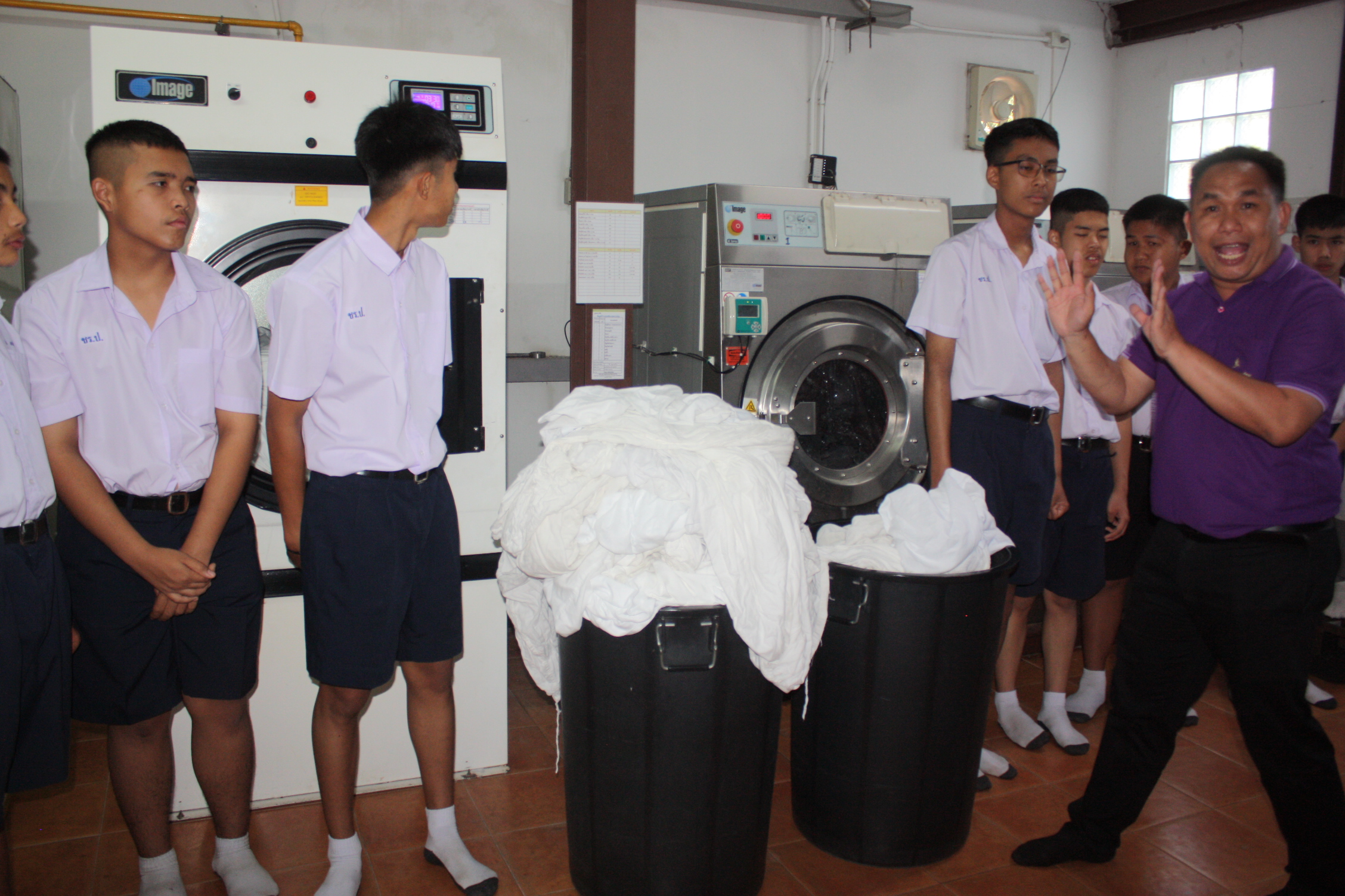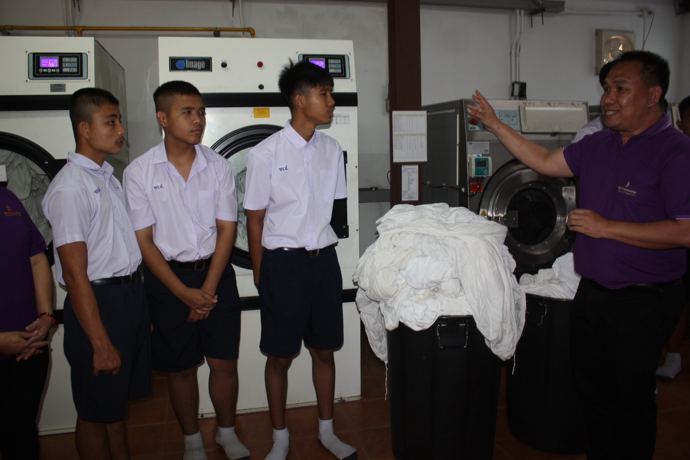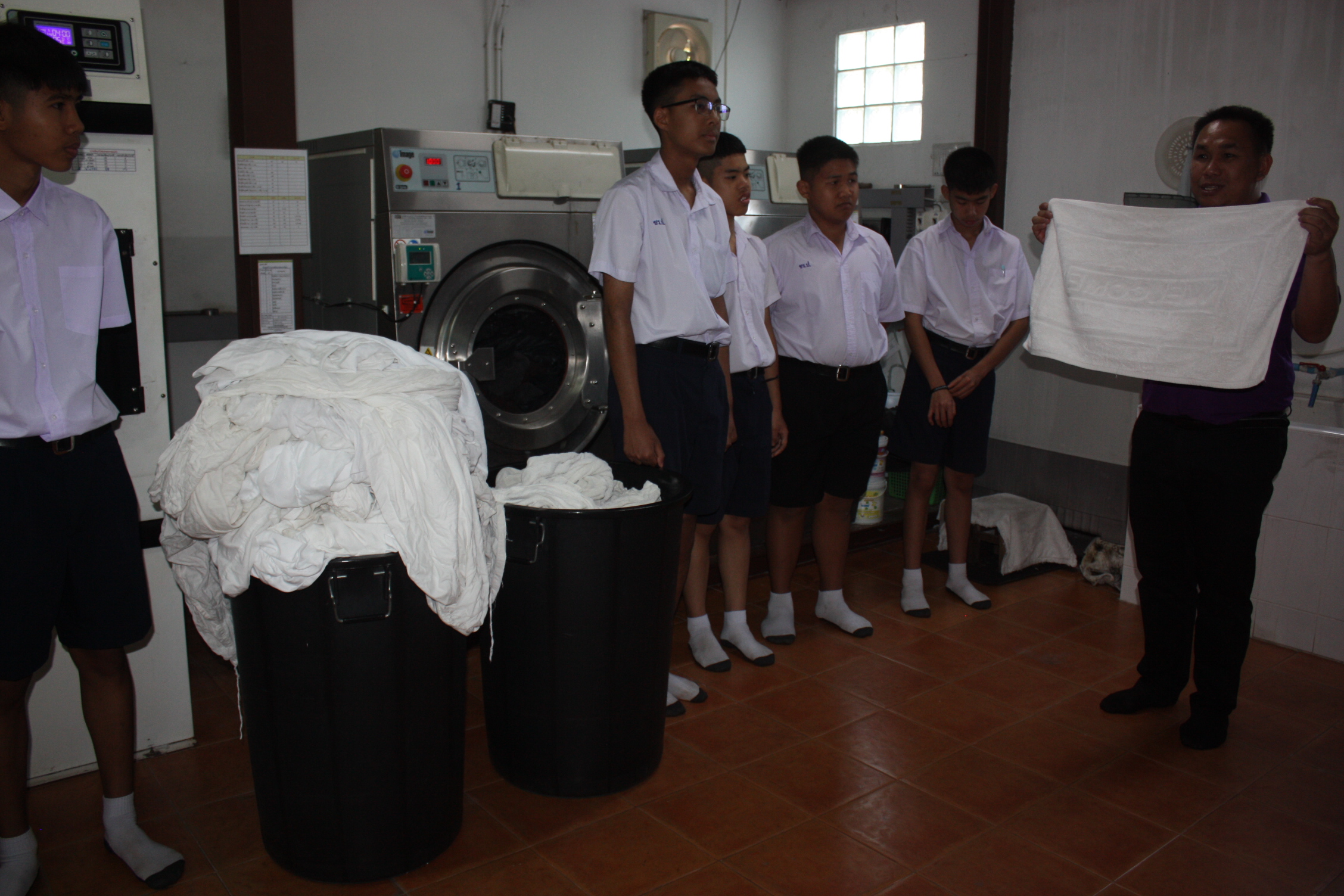 ***โรงแรมได้จัดพนักงานที่เหมาะสมที่จะสามารถดูแลและฝึกเด็กๆ ไว้แล้ว โดยขั้นตอนแรกคือการฝึกคัดแยกประเภทของผ้า เช่น ผ้าปูเตียง ผ้าห่ม หมอน ฯลฯ จากนั้นจึงเป็นขั้นตอนการซักตามลำดับ เมื่อเด็กๆ ต้องย้ายออกไปยังโรงซัก อบและรีดของตัวเองแล้ว ทางโรงแรมก็ยินดีจะจัดพนักงานเข้าไปดูแลอย่างต่อเนื่อง และมีความยินดีที่ได้ช่วยเด็กๆ และเป็นส่วนหนึ่งในการช่วยเหลือสังคมด้วย