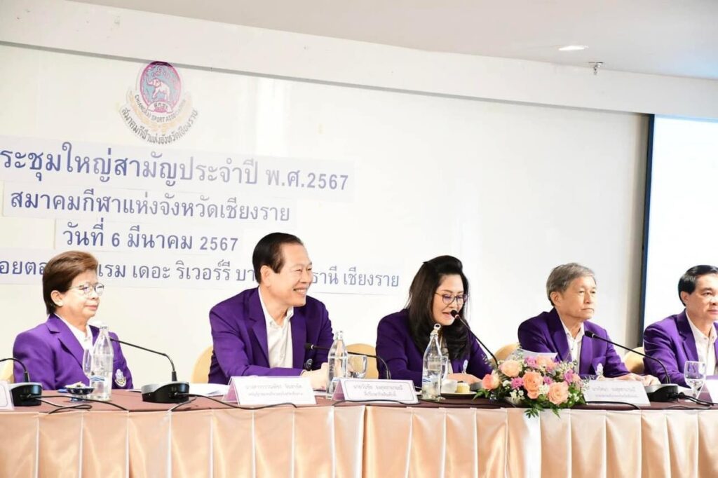 ***เมื่อวันที่ 6 มีนาคม 2567 เทศบาลนครเชียงรายโดย นายวันชัย จงสุทธานามณี นายกเทศมนตรีนครเชียงราย ร่วมการประชุมใหญ่สามัญประจำปี พ.ศ.2567 สมาคมกีฬาแห่งจังหวัดเชียงราย โดยมีนางรัตนา จงสุทธานามณี นายกสมาคมกีฬาแห่งจังหวัดเชียงราย พร้อมด้วย คณะกรรมการบริการสมาคมฯ จัดการประชุมใหญ่สามัญประจำปี พ.ศ.2567 ณ โรงแรมเดอะริเวอร์รี บายกะตะธานี จังหวัดเชียงราย พร้อมประธานฝ่ายกีฬา ผู้แทนฝ่ายกีฬา ทุกชนิดกีฬา รวมทั้ง นางชญาณ์นันท์ เชื้อศิริถาวร ผู้อำนวยการสำนักงานการกีฬาแห่งประเทศไทย จังหวัดเชียงราย เข้าร่วมประชุม