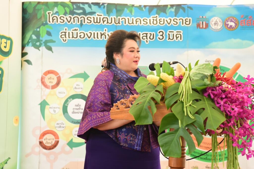 ***เมื่อวันอาทิตย์ที่ 17 มีนาคม 2567 ท่านศุภมาศ อิสรภักดี รัฐมนตรีกระทรวงอุดมศึกษาวิทยาศาสตร์วิจัยและนวัตกรรม ลงพื้นที่ติดตามในโครงการ “พัฒนานครเชียงราย สู่เมืองความสุข 3 มิติ” ประกอบด้วย มิติสังคม เศรษฐกิจและสิ่งแวดล้อม ชุมชนป่าตึงริมกก1ใน65ชุมชนเทศบาลนครเชียงราย นายวันชัย จงสุทธานามณี นายกเทศมนตรีนครเชียงราย มุ่งเน้นการเสริมสร้างความเข้มแข็งให้กับชุมชน ดำเนินงานร่วมกันของมหาวิทยาลัยราชภัฏเชียงราย มหาวิทยาลัยเทคโนโลยีราชมงคลล้านนาเชียงราย ตลอดจนสถาบันวิชาการต่างๆ ที่มีเป้าหมายในการพัฒนาเมืองอย่างยั่งยืน เพื่อยกระดับคุณภาพชีวิตของชุมชนเขตเมืองที่สอดคล้องรับนโยบายของจังหวัดเชียงรายและเป็นเมืองแห่งสุขภาวะ (Wellness City)