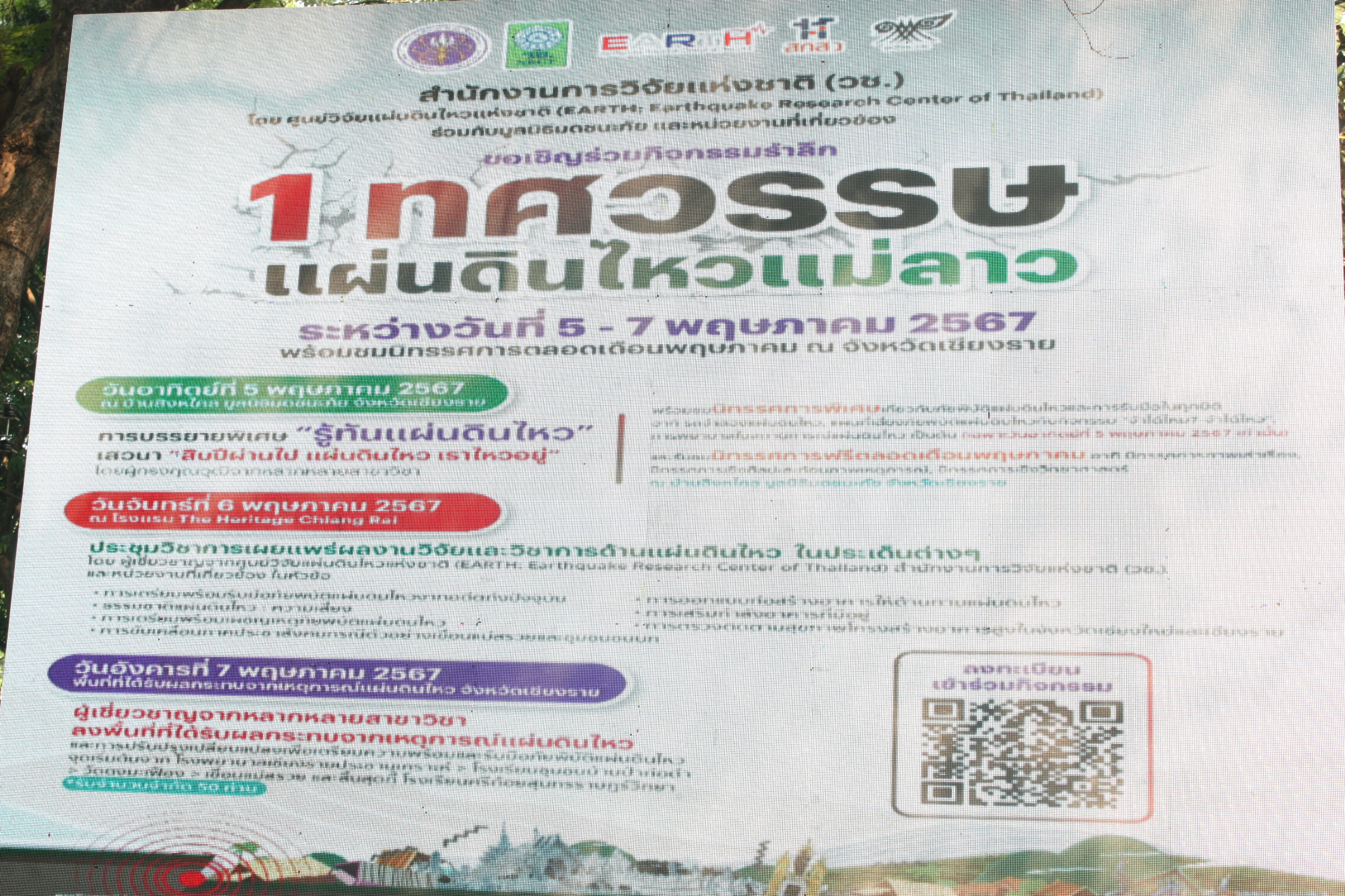 ***กิจกรรมภายในงานประกอบด้วย นิทรรศการ1 ทศวรรษ แผ่นดินไหวแม่ลาว ความรู้เกี่ยวกับแผ่นดินไหว การแสดงอุปกรณ์ตรวจสอบการเกิดแผ่นดินไหว การจำลองสถานการแผ่นดินไหว การบรรยายพิเศษ “รู้ทันแผ่นดินไหว” และการเสวนาในหัวข้อ “สิบปีผ่านไป แผ่นดินไหว เราไหวอยู่”