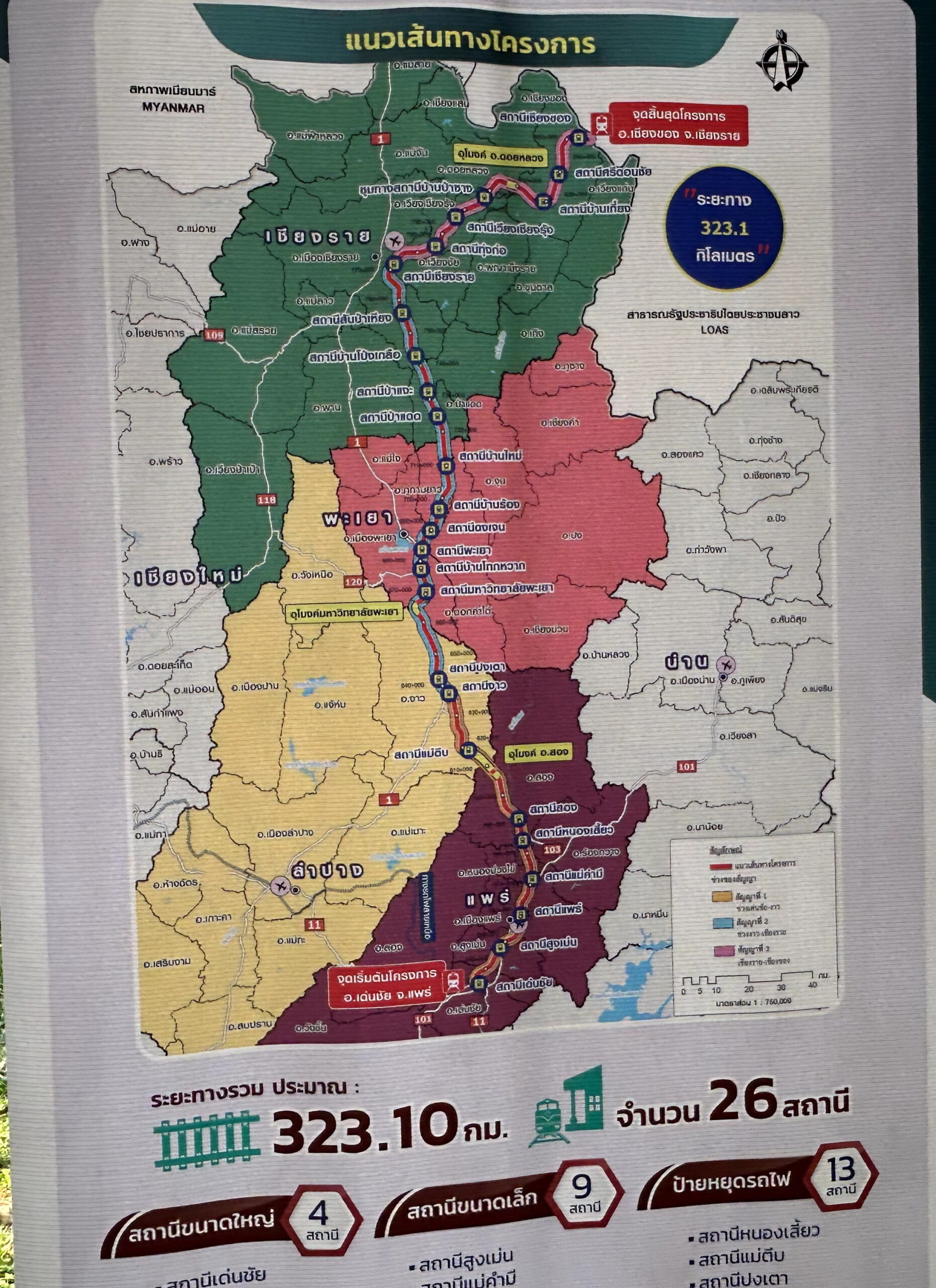 ***นายธนา อินทร์อำนวย ฝ่ายประสานงานโครงการฯ กล่าวว่า ช่วงเวลานี้อยู่ในช่วงการเวนคืนซึ่งยังมีปัญหาอยู่บ้างในเรื่องราคาเวรคืนที่ชาวบ้านยังมองว่าน้อยเกินไป แต่ทางการรถไฟจะสามารถเจรจาในอัตราที่ชาวบ้านพอใจได้ และเตรียมให้บริษัทที่รับจ้างก่อสร้างสามารถเข้าพื้นที่ทำงานได้เต็มที่ การก่อสร้างเริ่มมีการวางเสาเข็มเป็นบางจุดแล้ว บางจุดก็เริ่มเจาะอุโมงค์แล้วทั้งฝั่งใต้และฝั่งเหนือ เช่นที่บ้านแม่กา อ.เมืองพะเยา ที่จังหวัดเชียงราย เริ่มเจาะแล้วที่ อ.ดอยหลวง ซึ่งจะมีระยะทางประมาณ 2.7 กม. เส้นทางรถไฟในส่วนของจังหวัดเชียงรายจะเริ่มตั้งแต่บ้านห้วยดอย-หนองเหียง ไปถึงด่านขนส่งสินค้า อ.เชียงของ ระยะทางกว่า 80 กม. คาดว่าจะก่อสร้างเสร็จเรียบร้อยภายใน ปีพ.ศ. 2571 ขอให้ชาวเชียงรายมั่นใจได้