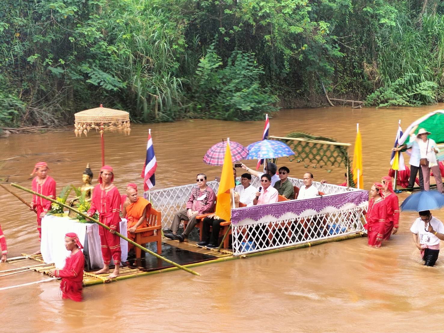 อ.แม่สรวยจำลองพิธีแห่พระเจ้าทองทิพย์ขึ้นจากน้ำลาว พุทธศาสนิกชนร่วมพิธีคับคั่งเนื่องในวันวิสาขบูชา 2567