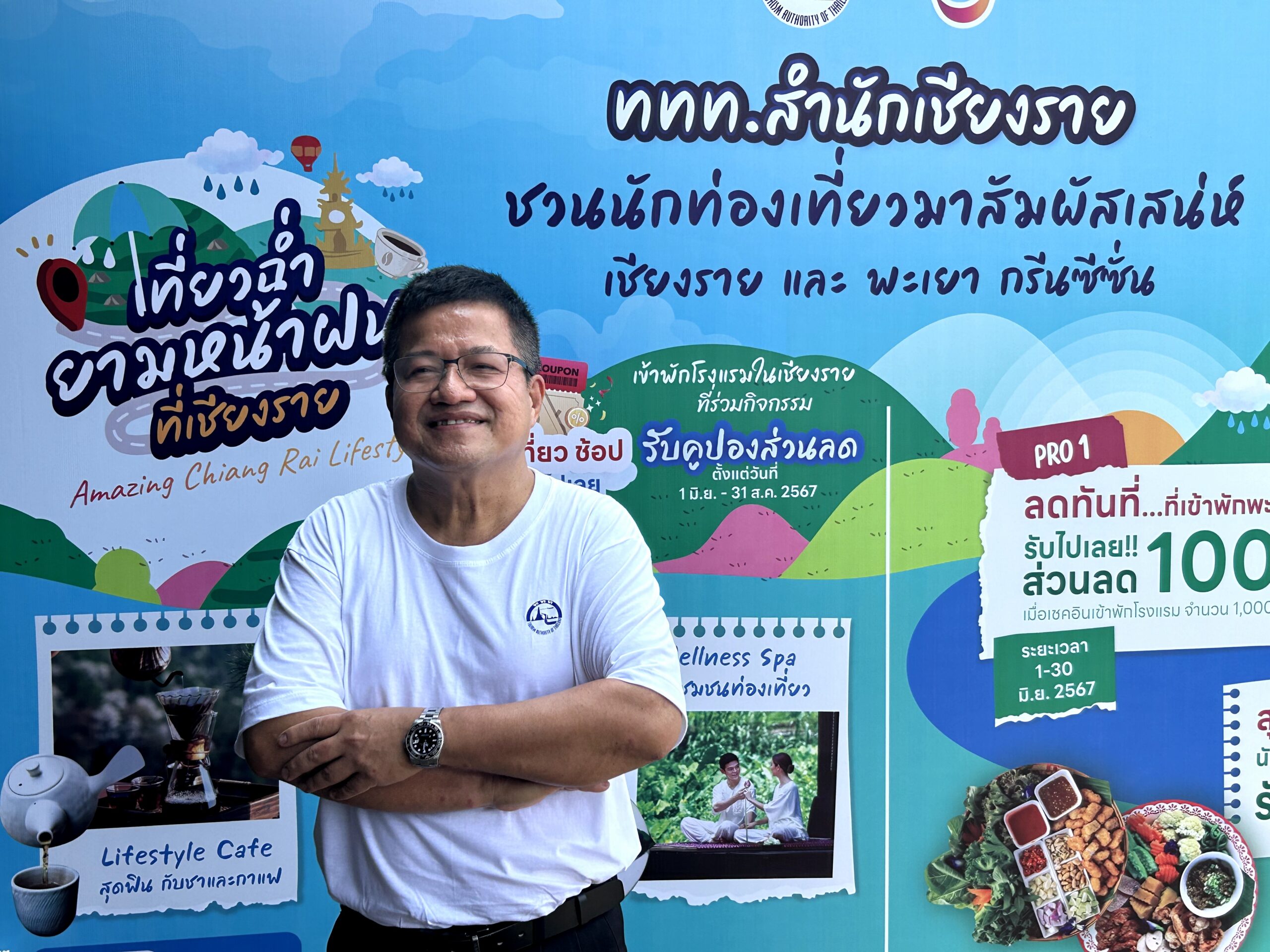 ***นายสรรเสริญ ศีติสาร ผช.ผอ.ททท.สนง.เชียงราย กล่าวว่า ททท. สำนักงานเชียงราย ร่วมกับ ผู้ประกอบการท่องเที่ยวจังหวัดเชียงราย ได้นำเสนอสินค้าและบริการท่องเที่ยว เชิญชวนมาท่องเที่ยวสัมผัสกับประสบการณ์ท่องเที่ยวในเส้นทางความสุขที่หลากหลายในพื้นที่จังหวัดเชียงราย เช่น เส้นทางท่องเที่ยวสายธรรมชาติ เส้นทางเยี่ยมบ้านศิลปิน เส้นทางจิบชาและกาแฟ เส้นทางท่องเที่ยวเชิงสุขภาพ และเส้นทางท่องเที่ยวในชุมชน ในช่วง Green Season โดยมอบสิทธิพิเศษสำหรับนักท่องเที่ยวต่างจังหวัด ที่พักค้างในโรงแรมที่ร่วมกิจกรรมในพื้นที่จังหวัดเชียงรายกว่า 40 แห่ง รับฟรีคูปองเป็นส่วนลดค่าใช้จ่ายสินค้าและบริการทางการท่องเที่ยวในสถานประกอบการที่ร่วมกิจกรรม ได้แก่ ร้านคาเฟ่ (ร้านกาแฟ) ร้านอาหาร สปา กิจกรรมท่องเที่ยว กิจกรรมท่องเที่ยวชุมชน รวมจำนวนกว่า 80 แห่ง ให้แก่นักท่องเที่ยวที่เข้าพักโรงแรมที่พักในจังหวัดเชียงราย จำนวน 3,000 สิทธิ์ ตามเงื่อนไขที่ ททท. กำหนด ในระหว่างวันที่ 1 มิถุนายน – 31 สิงหาคม 2567