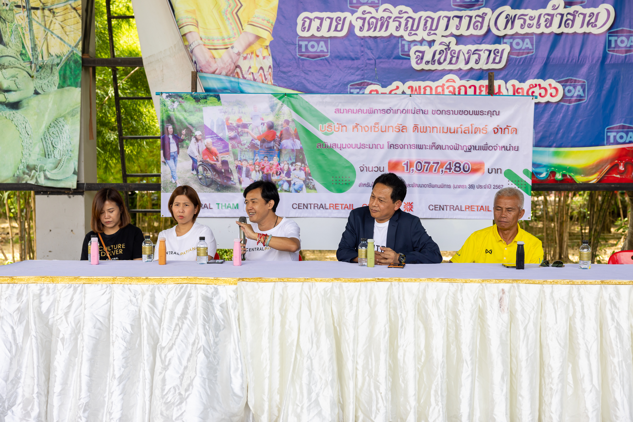***กลุ่มเซ็นทรัล นำโดยคุณสัมฤทธิ์ อนุภักดิ์ ผู้ช่วยกรรมการผู้จัดการใหญ่ อาวุโส ฝ่ายพัฒนาการศึกษาและสังคม อย่างยั่งยืน กลุ่มเซ็นทรัล, คุณสายัณห์ นักบุญ ผู้จัดการทั่วไปศูนย์การค้าเซ็นทรัล เชียงราย และทีมพนักงานจิตอาสา ร่วมมอบเงินสนับสนุนโครงการส่งเสริมอาชีพคนพิการ ตามมาตรา 35 ประจำปี 2567 “โครงการเพาะเห็ดนางฟ้าภูฐานเพื่อจำหน่าย” ให้แก่คนพิการ สมาคมคนพิการ อำเภอแม่สาย และ ชมรมผู้ปกครองทางสติปัญญา อำเภอดอยหลวง จำนวน 13 คน เป็นเงินทั้งสิ้น 1,556,360 บาท
