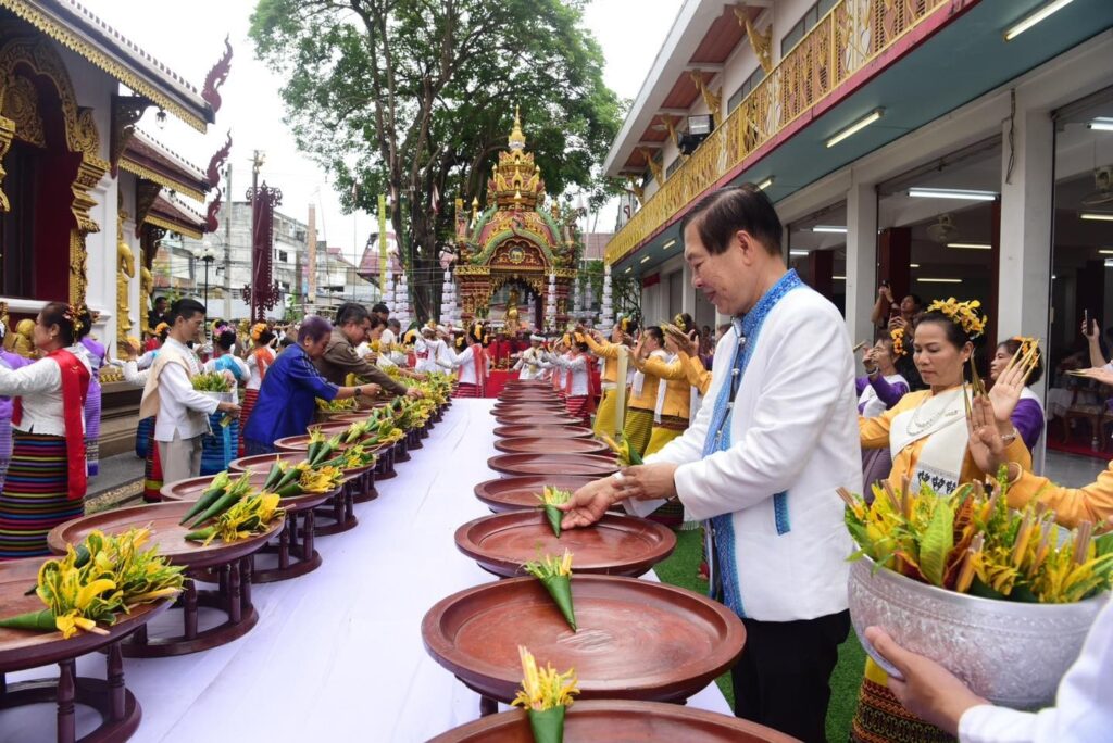 “นายกวันชัย” ร่วมงานประเพณีเดือน 8 เข้าเดือน 9 ออกใส่ขันดอกสะดือเมืองเชียงราย วัดกลางเวียง