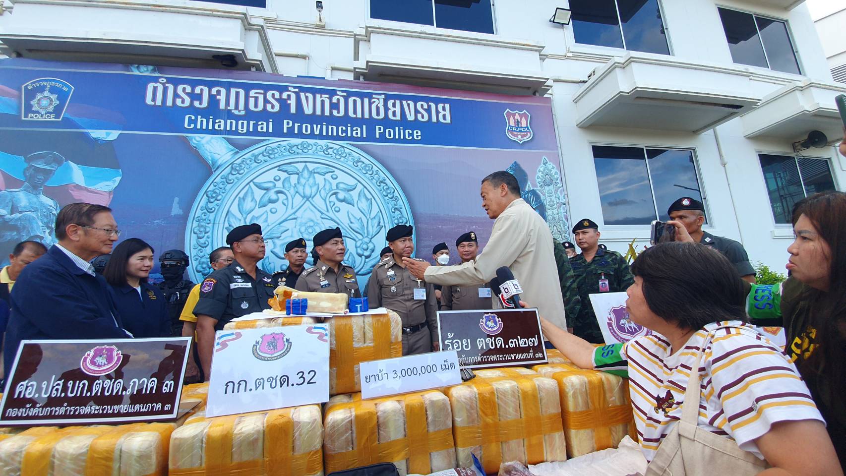 ***โดย พ.ต.อ.รังสิมันต์ สงเคราะห์ธรรม รอง ผบก.ตชด.ภาค 3 ได้รายงานเหตุการณ์การสกัดกั้นยาเสพติด จำนวน 3 ล้านเม็ดว่า เป็นกลุ่มของเครือขายค้ายาเสพติดในพื้นที่ อ.แม่ฟ้าหลวง จ.เชียงราย โดยทางเจ้าหน้าที่ได้ติดตามและสามรถสกัดกั้นและขยายผลไปยังบ้านของผู้ต้องหาเพื่อดำเนินการตามกฎหมายต่อผู้กระทำผิดกฎหมายต่อไป