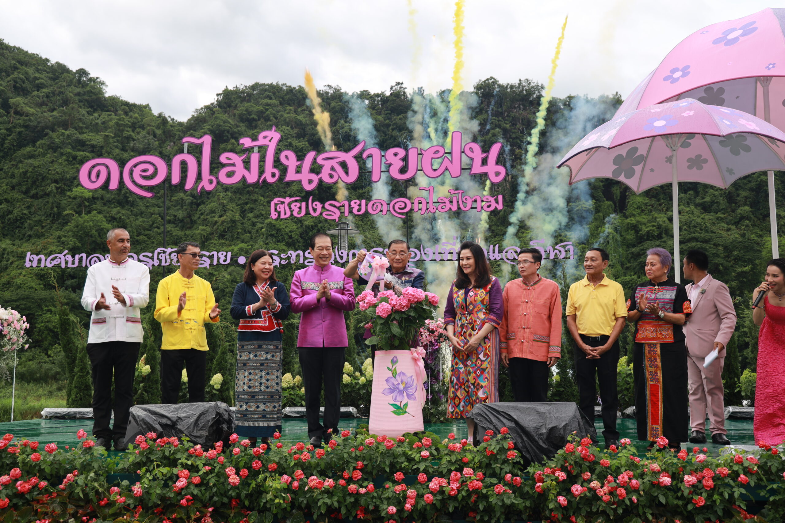 ***นางสุภาพรรณ หมั่นเจริญ รองผู้ว่าราชการจังหวัดเชียงราย กล่าวว่า จังหวัดเชียงราย เป็นจังหวัดหนึ่งที่เป็นที่นิยมของนักท่องเที่ยว ซึ่งในช่วงฤดูฝน Green season ถือว่าเป็นช่วงเวลาสำคัญที่ต้องมีการส่งเสริมให้เกิดการท่องเที่ยวเพิ่มมากขึ้น ดังนั้นทุกภาคส่วนต้องร่วมมือกันต้อนรับนักท่องเที่ยวและผู้มาเยี่ยมเยือน ผลักดันให้เกิดกระแส Soft power ซึ่งปีนี้การจัดงานดอกไม้ในสายฝนเป็นครั้งแรก นับเป็นส่วนสำคัญที่ทำให้จังหวัดเชียงรายเป็นเมืองแห่งการท่องเที่ยวที่มีชื่อเสียงเป็นที่รู้จัก เป็นส่วนหนึ่งที่ทำให้เกิดการฟื้นตัวทางเศรษฐกิจอย่างรวดเร็วและสอดคล้องกับแนวทางในการพัฒนาจังหวัดเชียงรายที่มุ่งเน้นการทำงานแบบ บูรณาการร่วมกันทุกภาคส่วน ตามวิสัยทัศน์ที่ว่า “เชียงรายเมืองท่องเที่ยวสร้างสรรค์ สะอาด ปลอดภัย น่ายล”