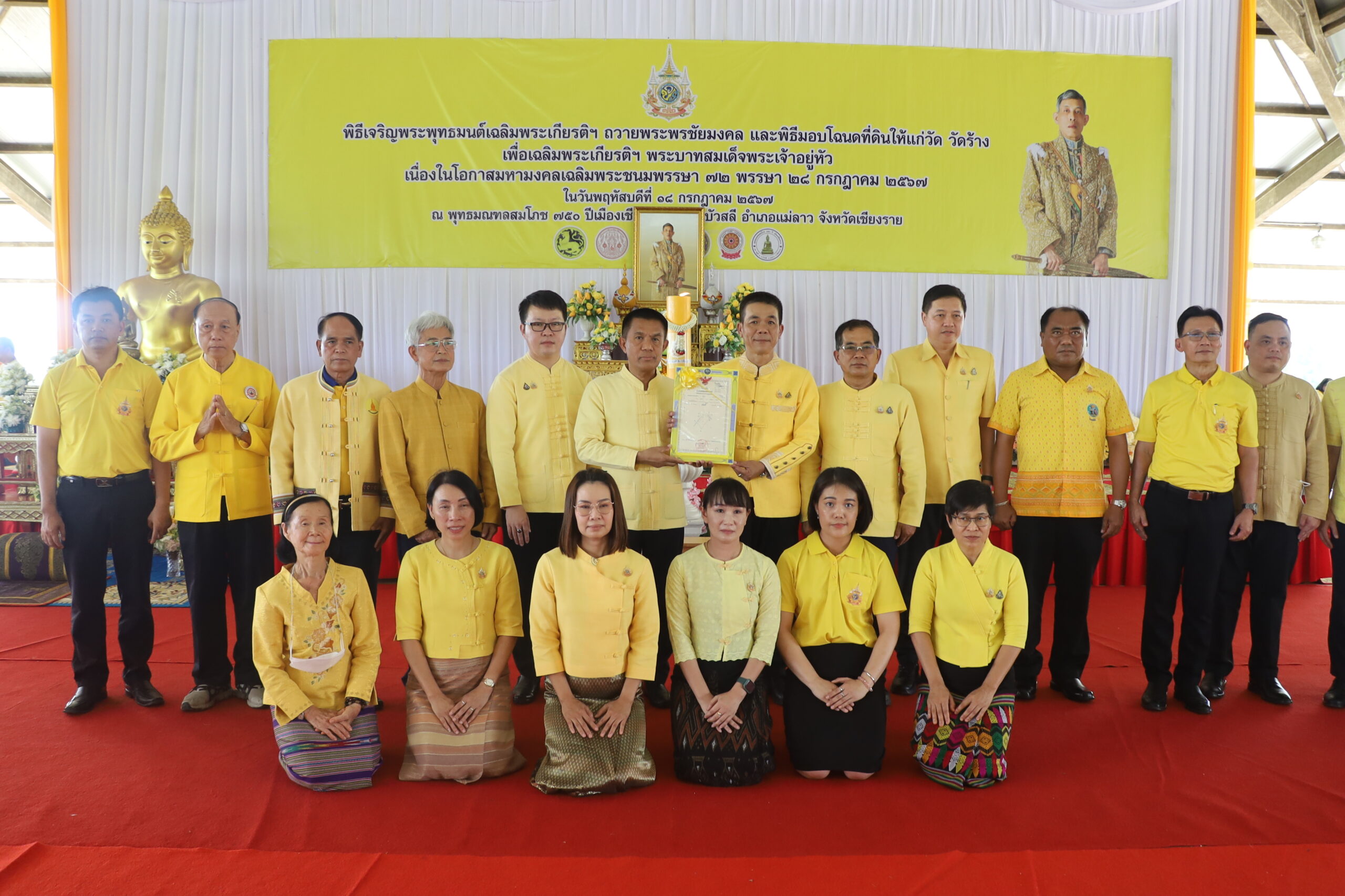 เชียงรายจัดพิธีมอบโฉนดที่ดินให้แก่วัดร้าง โบสถ์ มัสยิด เฉลิมพระเกียรติพระเจ้าอยู่หัวเฉลิมพระชนมพรรษา 6 รอบ
