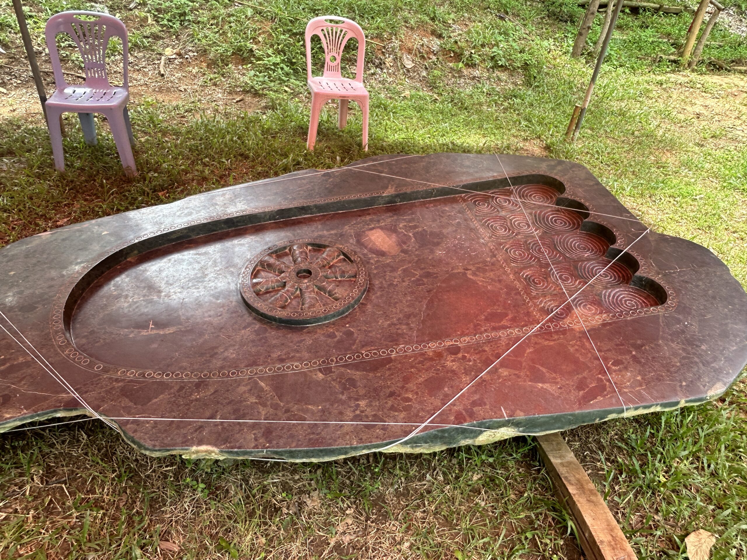 ***สล่าองอาจ อินต๊ะวงค์ กล่าวว่า รอยพระพุทธบาทขนาด ยาว.2.5 เมตร กว้าง 1.7เมตร ทำมาจากหินสีเขียวก้อนใหญ่หนัก 1 ตันเศษ ตนเองเป็นผู้แกะสลัก ใช้เวลา 3 เดือนจึงแล้วเสร็จ นำมาถวายให้แก่ “หลวงพี่เอก” พระเมธวัจน์ พุทธิโก เพื่อนำมาประดิษฐาน ณ สำนักสงฆ์ บุญพาเจริญ (ม่อนต้นต้อง) เพื่อให้พุทธศาสนิกชนได้มาสักการะ ปฎิบัติธรรม