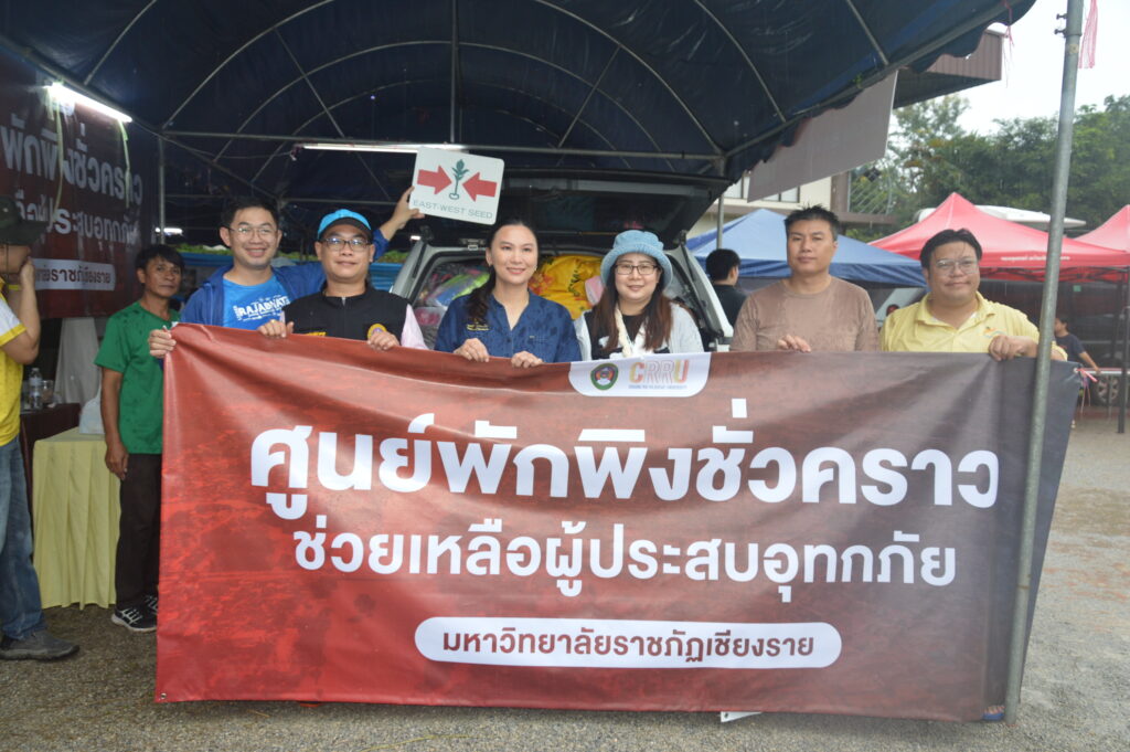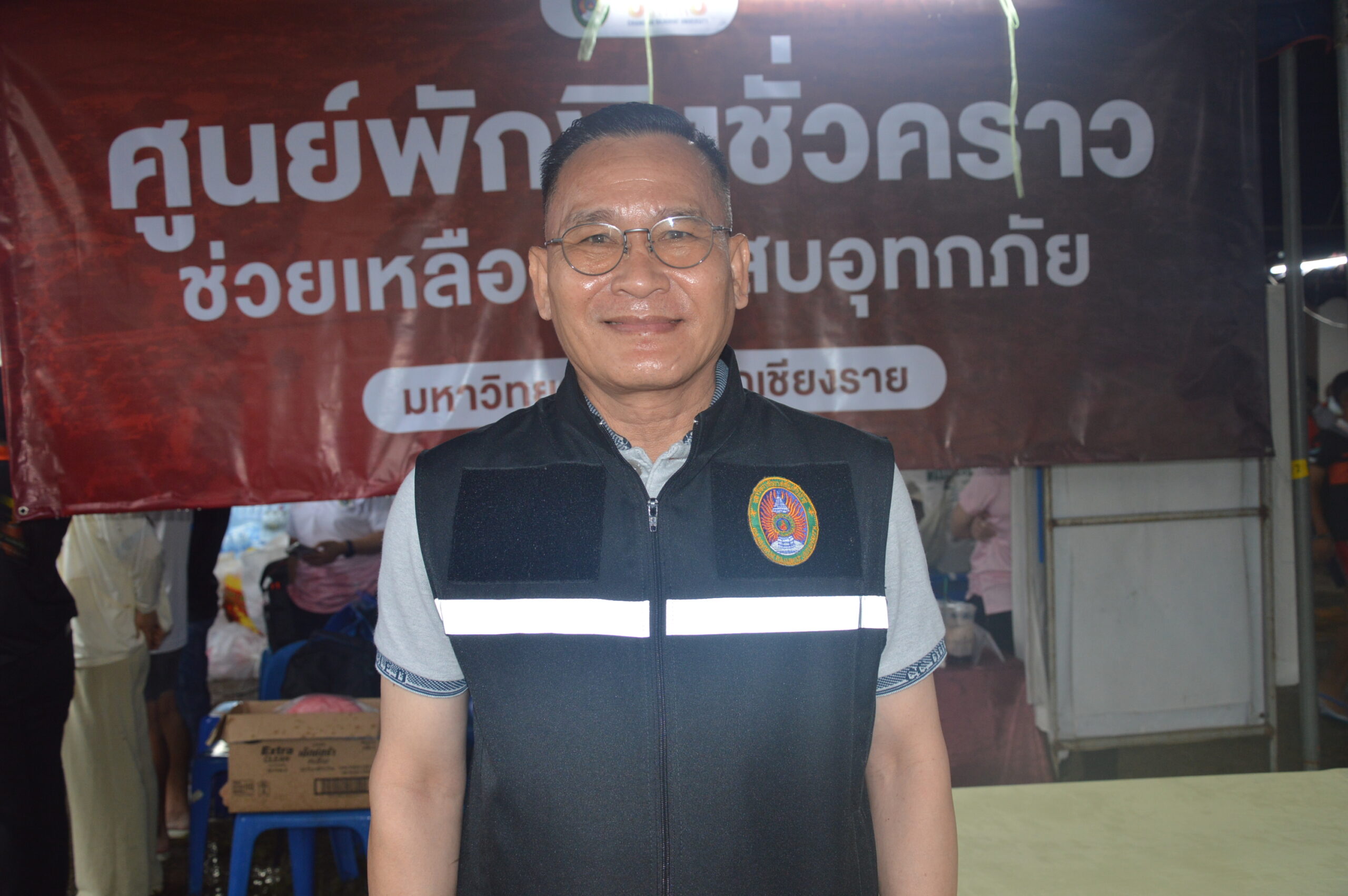 ***ผศ.ดร.ศรชัย มุ่งไธสง อธิการบดี มหาวิทยาลัยราชภัฎเชียงราย กล่าวว่า มหาวิทยลัยราชภัฏเชียงรายซึ่งเป็นสถาบันอุดมศึกษาเพื่อการพัฒนาท้องถิ่น ได้ช่วยเหลือผู้ประสบภัยน้ำท่วมใหญ่เชียงรายตั้งแต่น้ำเริ่มท่วมใหม่แล้ว ด้วยการเปิดพื้นที่ให้ประชาชนน้ำรถมาจอดภายในมหาวิทยาลัยได้ เพื่อป้องกันความเสียหายที่อาจจะเกิดกับยานพาหนะได้ นำอาหาร น้ำดื่ม เครื่องอุปโภคต่างๆออไปช่วยชาวบ้านในแต่ละชุมชนทุกวัน ตั้งศูนย์พักพิงชั่วคราวที่หอประชุมใหญ่ของมหาวิทยาลัย เพื่อให้ประชาชนที่ไม่สามารถอาศัยอยู่ในบ้านได้เนื่องจากน้ำท่วม ให้มาอยู่ที่ศูนย์พักพิงชั่วคราวจนกว่าสถานการณ์น้ำท่วมจะดีขึ้น เปิดโรงพยาบาลสัตว์ของมหาวิทยาลัยให้เป็นสถานที่รักษาและช่วยเลี้ยงสัตว์เลี้ยงของประชาชนที่ประสบภัย ให้เจ้าหน้าที่ บุคลากร และนักศึกษา คณะสาธารณสุขศาสตร์และที่เกี่ยวข้อง ลงพื้นที่ดูแลอาการเจ็บป่วยของประชน โดยทั้งหมดได้รับการสนับสนุนช่วยเหลือจาก อบจ.เชียงราย และบูรณาการร่วมกับหน่วยงานที่เกี่ยวข้องต่างๆ เช่น สำนักงานสาธารณสุขจังหวัดเชียงราย เป็นต้น ช่วยคัดกรองผู้ป่วย ซึ่งในวันแรกมีผู้ป่วยกว่า 1,000 คน