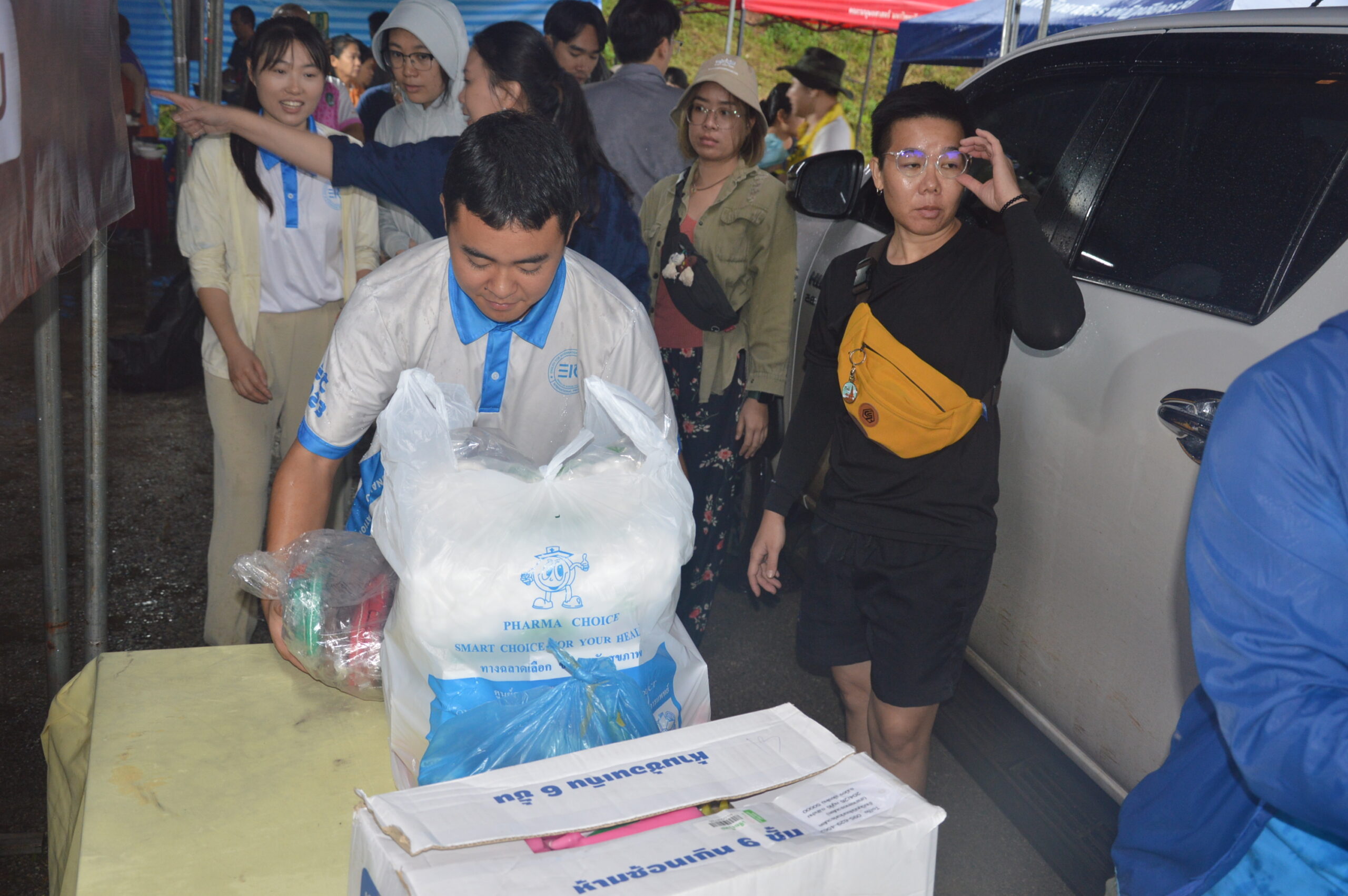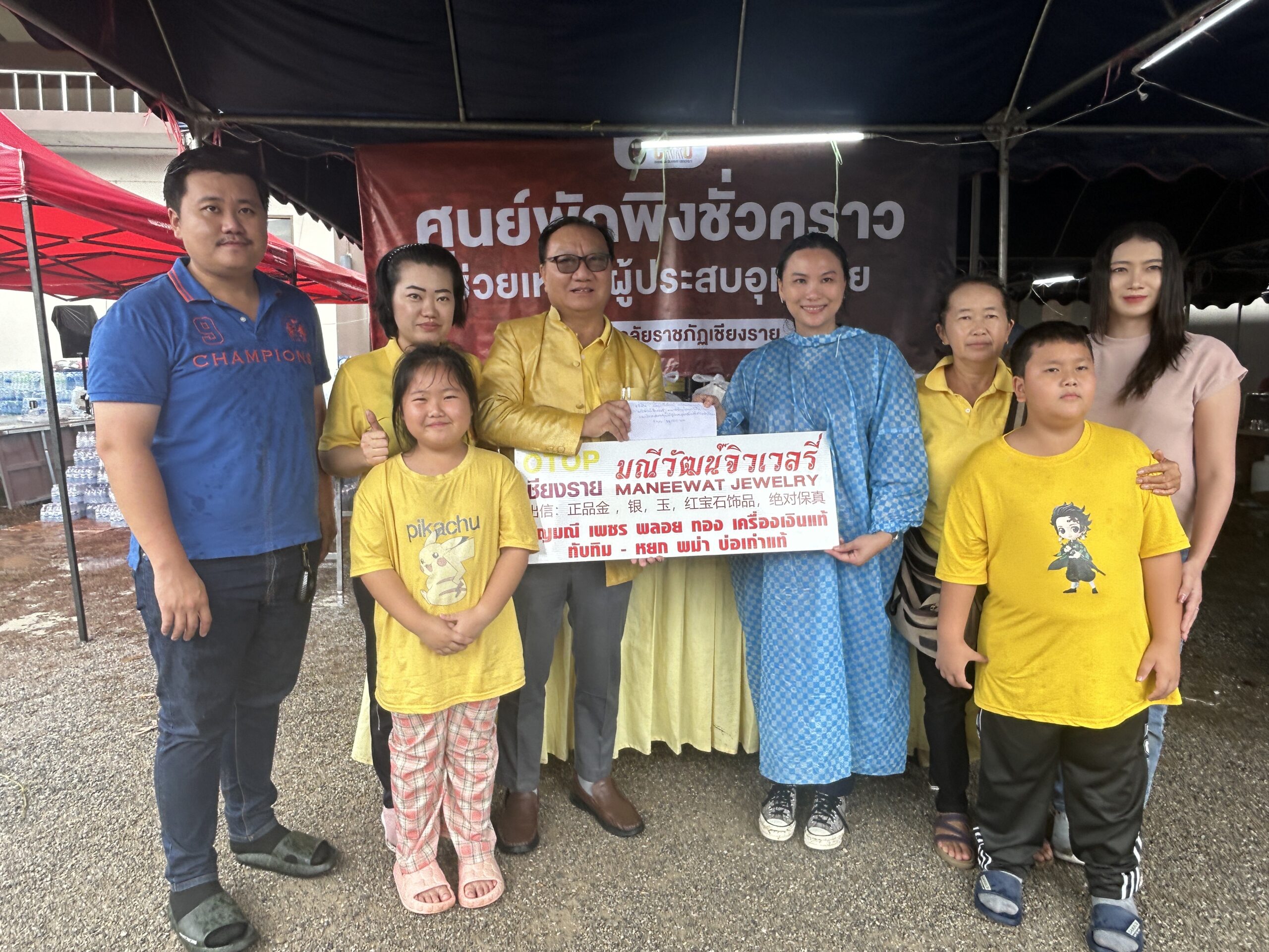 ***เมื่อวันที่ 14 ก.ย.2565 มีฝนตกลงมาตลอดทั้งวันอีกครั้ง ในขณะที่ยังมีพี่น้องประชาชนและผู้ประกอบการจำนวนมากทยอยฝ่าสายฝนมาร่วมบริจาคอาหารกล่อง อาหารแห้ง น้ำดื่ม และเงินจำนวนมากไม่ขาดสาย โดยมี ผศ.ดร.ศรชัย มุ่งไธสง อธิการบดี มหาวิทยาลัยราชภัฎเชียงราย ผศ.ดร.ปวีณา ลี้ตระกูล รองอธิการบดีฯ ผศ.ดร.จำรัส กลิ่นหนู รองอธิการบดีฯ ผศ.ยิ่งศักดิ์ เพชรนิล รองอธิการบดีฯ ผศ.ดร.ภูริพัฒน์ แก้วศรี ผู้ช่วยอธิการบดี รวมทั้งนักศึกษาอาสา และบุคลากรของมหาวิทยาลัย ร่วมให้การต้อนรับและรับสิ่งของบริจาค