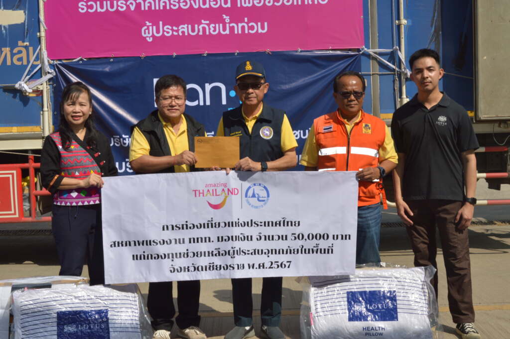 โลตัสร่วมททท.มอบชุดเครื่องนอน 2,000 ชุด ช่วยผู้ประสบภัยน้ำท่วม สหภาพแรงงาน ททท. มอบเงินช่วยเหลือฟื้นฟูหลังน้ำท่วม 50,000 บาท