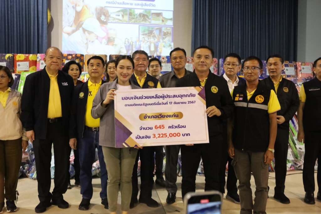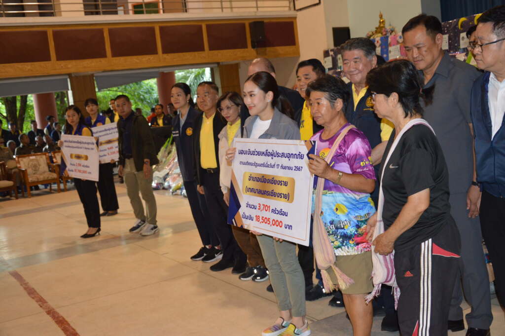 ***จากนั้นนายกรัฐมนตรีได้มอบเงินช่วยเหลือผู้ประสบอุทกภัยอำเภอเมืองเชียงราย จำนวน 30 ครอบครัว เป็นเงิน 1,485,000 บาท อำเภอเทิง จำนวน 6 ครอบครัว เป็นเงิน 297,000 บาท อำเภอเวียงแก่น จำนวน 18 ครอบครัว เป็นเงิน 891,000 บาท และมอบเงินช่วยเหลือฯ ตาม มติ ครม. เมื่อวันที่ 17 กันยายน 2567 ให้ช่วยเหลือผู้ประสบภัยน้ำท่วม พร้อมมอบชุดอุปกรณ์ทำความสะอาดบ้านเรือนให้กับผู้ประสบภัย