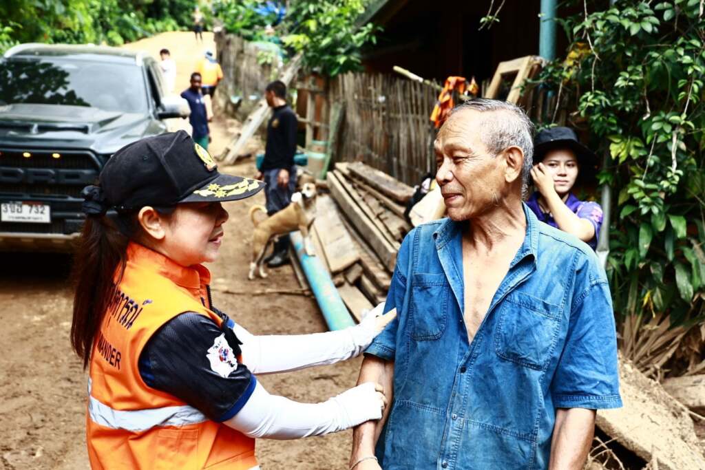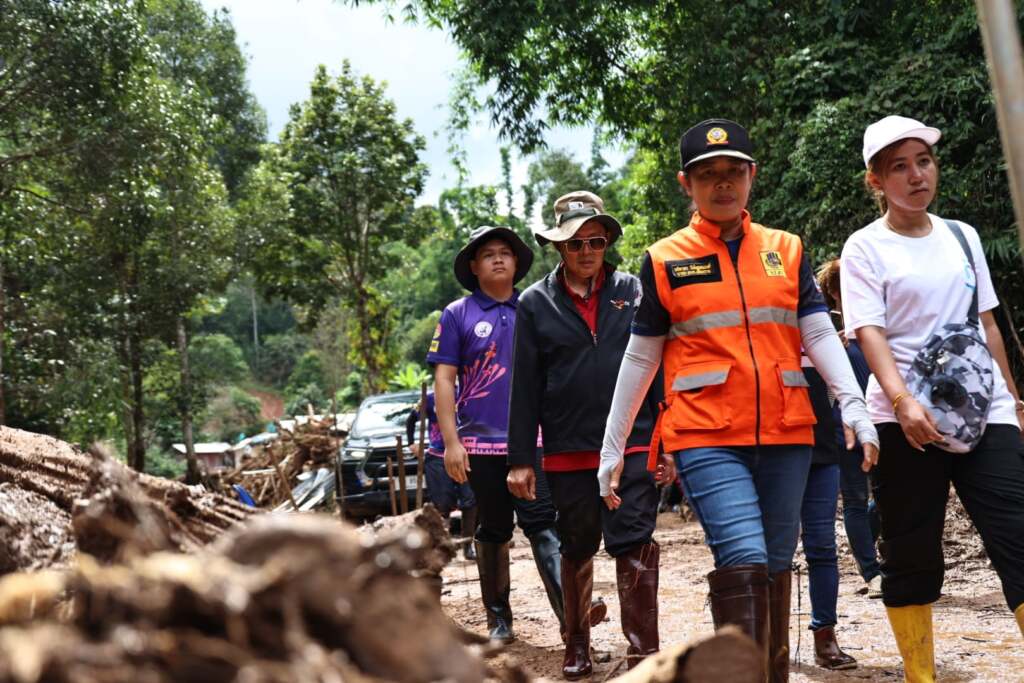 ***เมื่อเวลา 10.30 น. วันอาทิตย์ที่ 29 กันยายน 2567 นางอทิตาธร วันไชยธนวงศ์ นายก อบจ.เชียงราย ลงพื้นที่บ้านห้วยหินลาดใน และบ้านแม่ปูนหลวง ต.บ้านโป่ง อ.เวียงป่าเป้า จ.เชียงราย เพื่อสำรวจความเสียหายในพื้นที่และมอบถุงยังชีพให้แก่ผู้ประสบอุทกภัย เนื่องจากเมื่อวันที่ 25 กันยายน 2567 เส้นทางเชื่อม อ.เวียงป่าเป้า จ.เชียงราย – อ.พร้าว จุดเชียงใหม่ถูกตัดขาดจากดินสไลด์ ซึ่งนายกอบจ.เชียงรายได้สั่งการให้สำนักช่างอบจ.เชียงรายนำเครื่องจักรกลเข้าช่วยเหลืออย่างเร่งด่วน และได้นำถุงยังชีพและอุปกรณ์ทำความสะอาดให้แก่ประชาชนในพื้นที่ประสบอุทกภัย เพื่อบรรเทาทุกความเดือดร้อนในเบื้องต้น จากโครงการ “เดินตามฝัน ปันความสุข” โดยมีนางอัญญลักษณ์ กายาไชย เลขานุการนายก อบจ.เชียงราย นางรัชนีกร วงศ์ษา ส.อบจ.เชียงราย อ.เวียงป่าเป้า เขต 1 และเยาวชนจากศูนย์เยาวชนอบจ.เชียงราย พร้อมบุคลากรของอบจ.เชียงราย ร่วมให้ความช่วยเหลือผู้ประสบภัย