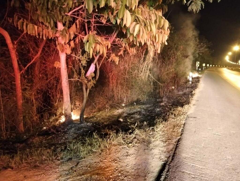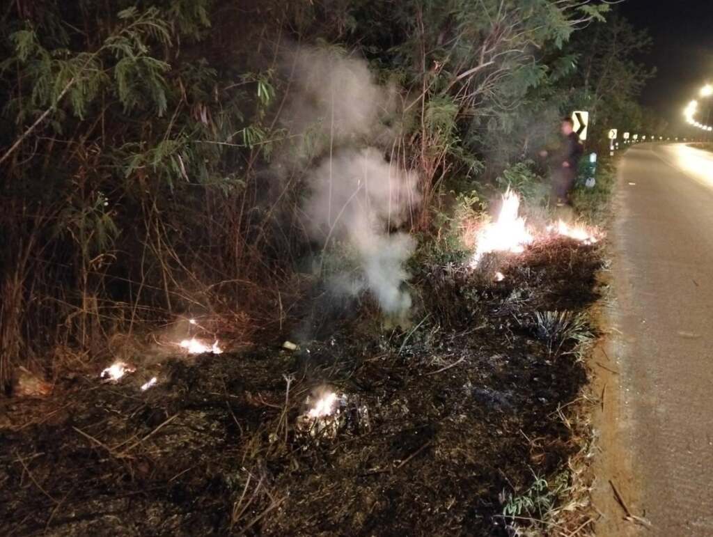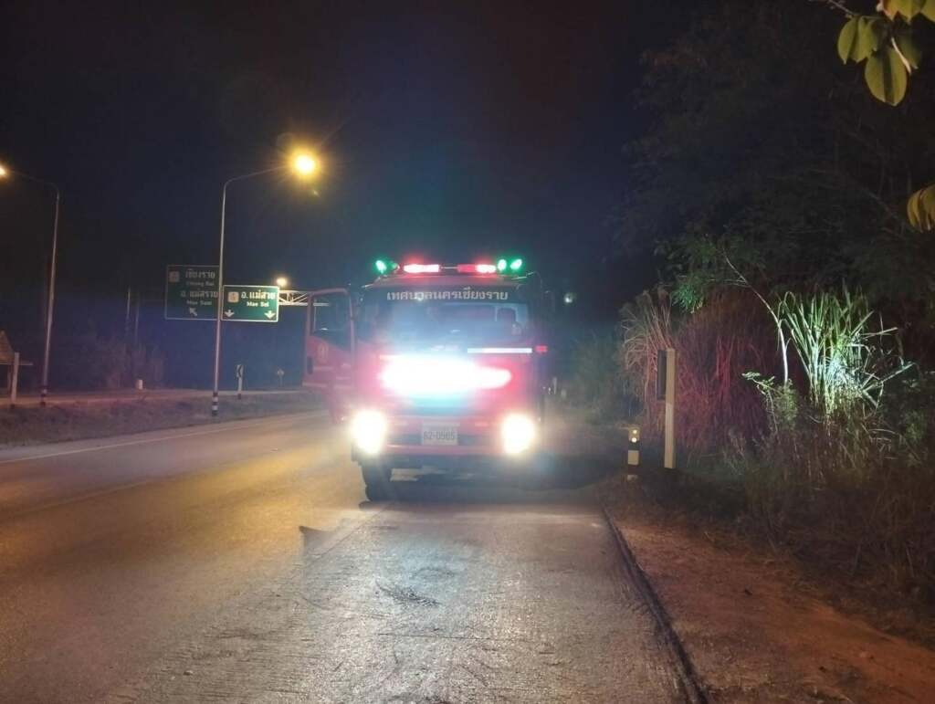 ปภ.เทศบาลนครเชียงรายระงับเหตุลักลอบเผาถนนบายพาสหัวฝาย