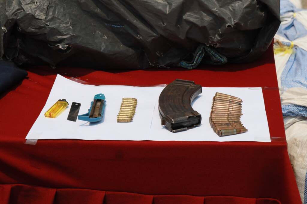 ***จนเวลา 19.30 น. เจ้าหน้าที่พบกลุ่มบุคคลต้องสงสัยจำนวนกว่า 20 คน กำลังช่วยกันขนเป้สะพายหลังทำจากกระสอบฟางมีถุงดำหุ้มอีกชั้นขึ้นใส่รถเพื่อส่งต่อให้กับผู้ร่วมขบวนการ เจ้าหน้าที่ได้ส่งสัญญาณเพื่อขอตรวจค้น กลุ่มบุคคลดังกล่าวได้ใช้อาวุธปืนไม่ทราบชนิดและขนาดยิงใส่เจ้าหน้าที่ทันที ทำให้เกิดการยิงปะทะกันนานกว่า 10 นาที หลังเสียงปืนสงบลงพบว่าเจ้าหน้าที่ทุกนายปลอดภัย ส่วนกลุ่มผู้ต้องสงสัยได้พากันหลบหนีเข้าไปในป่าและน่าจะล่าถอยกลับเข้าไปในเขตประเทศเพื่อนบ้าน ตรวจสอบบริเวณจุดปะทะพบเป้สะพายหลังตกอยู่จำนวน 2 เป้ และถุงย่ามสีดำจำนวน 1 ใบ ภายในพบซองกระสุนปืนขนาด 7.62 (อาร์ก้า) จำนวน 1 ซอง พร้อมเครื่องกระสุนปืน, ที่ชาร์ตแบตสำรองจำนวน 1 อัน และรองเท้าแตะสีดำ 1 คู่
