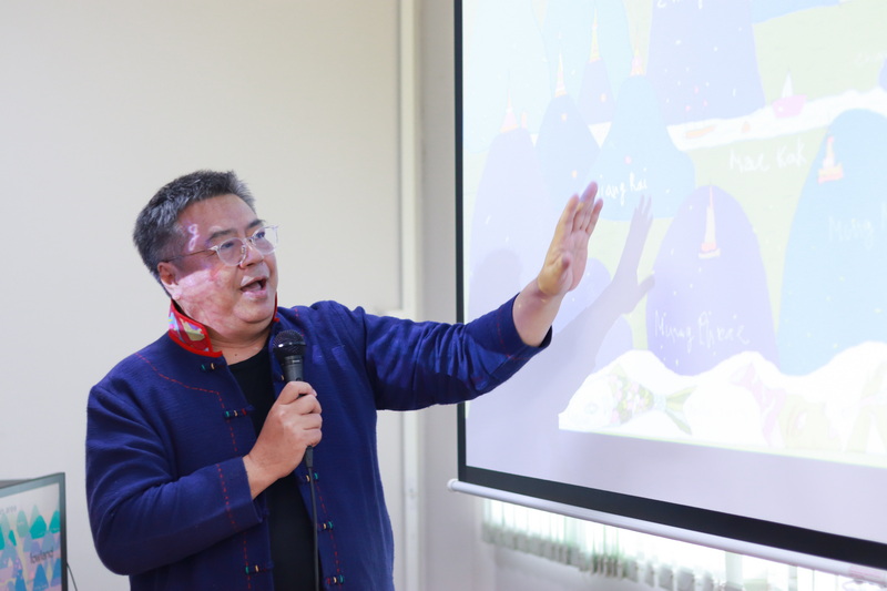 ***การบรรยายประวัติศาสตร์วัฒนธรรม อารยธรรมผ้าชาติพันธุ์ลุ่มแม่น้ำโขง ผ้าทอชาติพันธุ์ โดย รศ.ดร.พลวัต ประพัฒน์ทอง การบรรยายเรื่องการทอผ้าที่รวมเทคนิค จากช่างฝีมือในท้องถิ่น โดย คุณกฤตพงศ์ แจ่มจันทร์ นักเรียนโรงเรียนนานาชาติเวลลิงตันคอลเลจ กรุงเทพ ร่วมกับโครงการ “Chiang Rai Fashion to The World Season 3” โดยโครงการดังกล่าวเป็นการสนับสนุนและเปิดโอกาสให้นักออกแบบแฟชั่น (Designer) รุ่นใหม่ได้มีเวทีในการแสดงความสามารถ โดยเฉพาะการออกแบบชุดจากนักเรียนโรงเรียนนานาชาติเวลลิงตันคอลเลจ กรุงเทพ ซึ่งจะนำไปจำหน่าย รายได้จากการจำหน่ายจะนำไปเป็นทุนการศึกษาให้กับเด็กนักเรียนกลุ่มชาติพันธุ์ในพื้นที่จังหวัดเชียงราย ซึ่งถือเป็นการสร้างโอกาสทางการศึกษาและช่วยพัฒนาชุมชนในระดับหนึ่ง