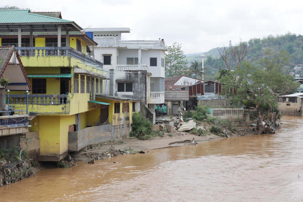***นายภาสกร บุญลักษม์ อธิบดีกรมป้องกันและบรรเทาสาธารณภัย กล่าวว่า ปริมาณฝนที่ตกในเมียนมาประมาณ 60 มิลลิเมตร ซึ่งไม่มากนักแต่ด้วยลำน้ำยังไม่ได้รับการขุดลอกโดยเฉพาะฝั่งเมียนมาจึงเกิดการล้นทะลัก ขณะที่ประเทศไทยได้เริ่มขุดลอกแม่น้ำรวกแล้วโดยกองทัพภาคที่ 3 คาดว่าจะแล้วเสร็จภายในวันที่ 20 มิถุนายน ส่วนการขุดลอกแม่น้ำสายฝั่งเมียนมายังไม่ได้ดำเนินการ และได้มีการประสานให้เร่งรัดผ่านทางผู้ว่าราชการท่าขี้เหล็กแล้ว เหตุการณ์น้ำท่วมเมื่อวันที่ 29 เมษายนที่ผ่านมา สาเหตุส่วนหนึ่งมาจากการเคลื่อนย้ายบิ๊กแบ็ค (Big Bag) ริมสะพานเพื่อเตรียมปรับปรุงพื้นที่ ทำให้น้ำไหลเข้าท่วมพื้นที่สายลมจอยประมาณ 10-20 เซนติเมตร ไม่ถึงระดับที่ส่งผลกระทบรุนแรงต่อร้านค้า โดยน้ำท่วมกินเวลาเพียง 2 ชั่วโมง ก็สามารถปิดบิ๊กแบ็คและสูบน้ำออกจนสถานการณ์คลี่คลายได้ทัน