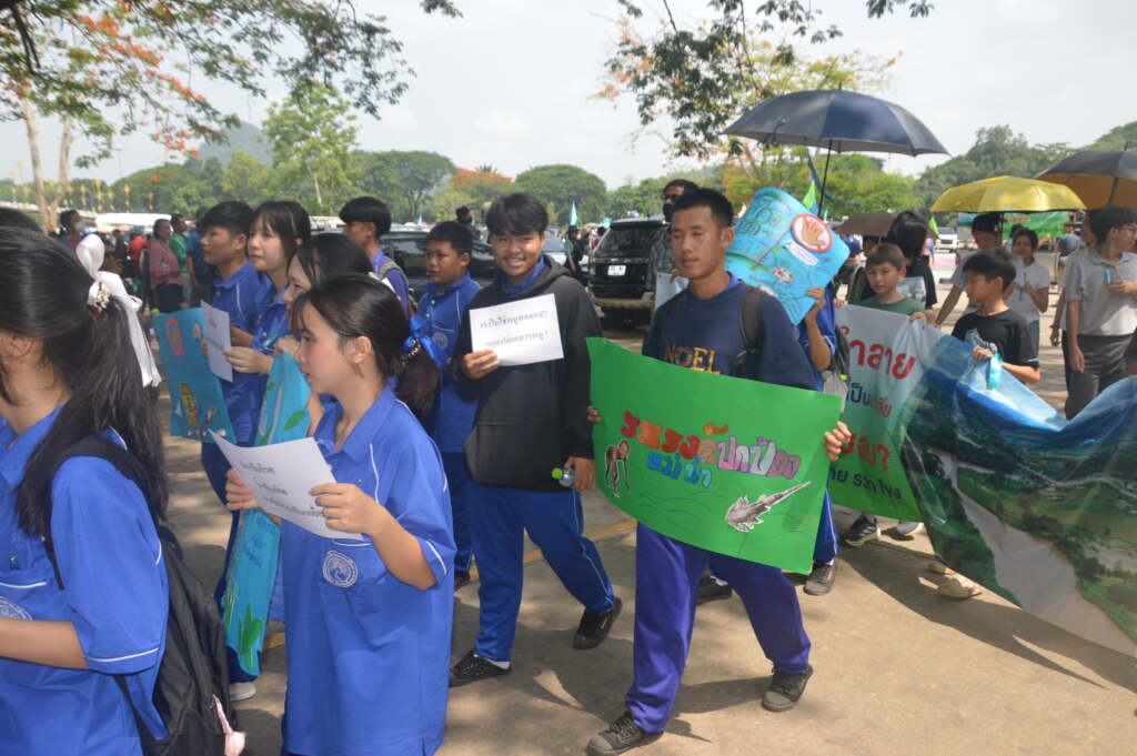 ***เมื่อเวลา 09.30 น. วันที่ 5 มิถุนายน 2568 วันสิ่งแวดล้อมโลก ที่บริเวณสนามฝึกวิชาทหารจังหวัดเชียงราย เชิงสะพานแม่ฟ้าหลวง ริมแม่น้ำกก อ.เมืองเชียงราย เครือข่ายภาคประชาชนจังหวัดเชียงราย จัดกิจกรรม “ปอยหลวงปิดเหมือง” กรณีพบสารพิษปนเปื้อนในแม่น้ำกก แม่น้ำรวก แม่น้ำสาย จากการทำเหมืองแร่ทองคำและแร่แรร์เอิร์ธในบริเวณต้นแม่น้ำกกของผู้ประกอบการจีนในพื้นที่ประเทศเมียนมาในเขตกองกำลังว้าจนส่งผลกระทบต่อสภาพแวดล้อมและระบบนิเวศน์ของแม่น้ำกกและแม่น้ำสาขาในพื้นที่จังหวัดเชียงรายประเทศไทย ก่อให้เกิดปัญหาต่อสุขภาพ การทำการเกษตร และสัตว์น้ำ มีเครือข่ายภาคประชาสังคม ภาควิชาการ ผู้นำศาสนา กลุ่มชาติพันธ์ และประชาชนจากจังหวัดเชียงราย จังหวัดเชียงใหม่ และจังหวัดข้างเคียงร่วมเดินขบวนรณรรงค์กว่า 1,000 คน โดยทุกคนจะติดริบบิ้นสีฟ้า-เขียวเพื่อแสดงสัญลักษณ์ คืนความปลอดภัยให้แก่แม่น้ำกก-รวก-สาย-โขง เพื่อเรียกร้องให้รัฐบาลเร่งดำเนินการเจรจากับประเทศต้นสายน้ำกกที่มีการทำเหมืองแร่ดังกล่าว โดยมีนายขจร ศรีชวโนทัย รองปลัดกระทรวงมหาดไทย ผู้แทน น.ส.แพทองธาร ชินวัตร นายกรัฐมนตรี รับหนังสือร้องเรียนแก้ไขปัญหามลพิษข้ามพรมแดนแม่น้ำกก แม่น้ำสาย แม่น้ำรวก และแม่น้ำโขง โดยหาช่องทางเจรจาปิดเหมืองแร่โดยทันทีและฟื้นฟูระบบนิเวศลุ่มน้ำ มีผู้นำภาคประชาคม ภาคประชาสังคม ภาควิชาการ และกลุ่มชาติพันธ์ นำโดย นางเตือนใจ ดีเทศ ประธานมูลนิธิพัฒนาชุมชนและเขตภูเขา (พชภ.) อดีตสมาชิกวุฒิสภา (สว.) จังหวัดเชียงราย นางอังคณา นีละไพจิตร อดีตคณะกรรมการสิทธิมนุษยชนแห่งชาติ นายนิวัฒน์ ร้อยแก้ว (ครูตี๋) ประธานกลุ่มรักษ์เชียงของ น.ส.เพียรพร ดีเทศน์ เลขานุการมูลนิธิพัฒนาชุมชนและเขตภูเขา (พชภ.) ดร.สืบสกุล กิจนุกร อาจารย์ประจำสำนักวิชานวัตกรรมสังคม มหาวิทยาลัยแม่ฟ้าหลวง