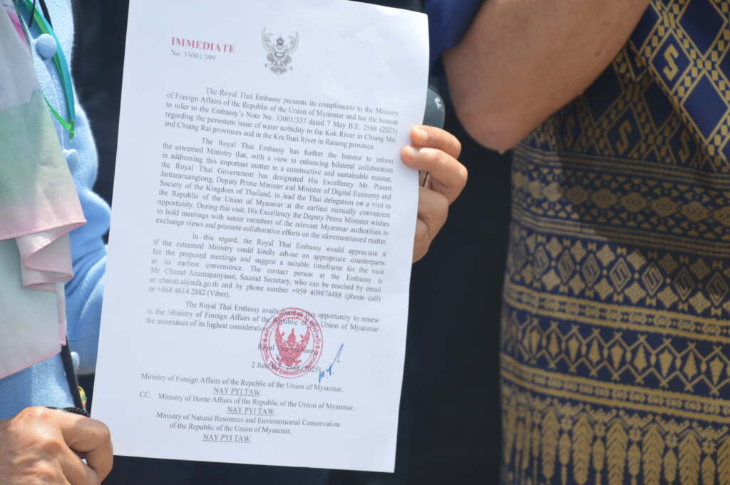 ชาวเชียงรายรวมพลังร้องรัฐบาลเร่งปิดเหมืองต้นน้ำกกในเมียนมา ยื่นหนังสือร้องรัฐบาล 3 ประเทศ ไทย-จีน-เมียนมา-กองกำลังว้า ปลัดมท.รับหนังสือส่งนายก แจงทำหนังสือถึงรัฐบาล 3 ประเทศแล้ว